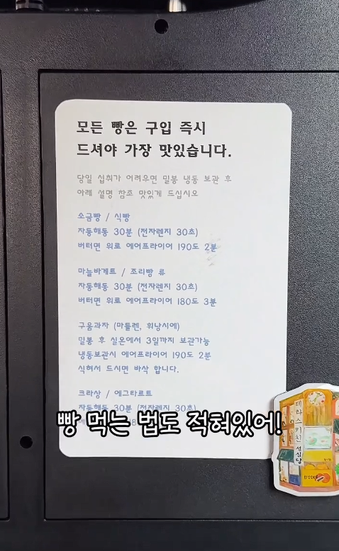 메뉴판에 적힌 빵집은 직접 다 드셔보시고