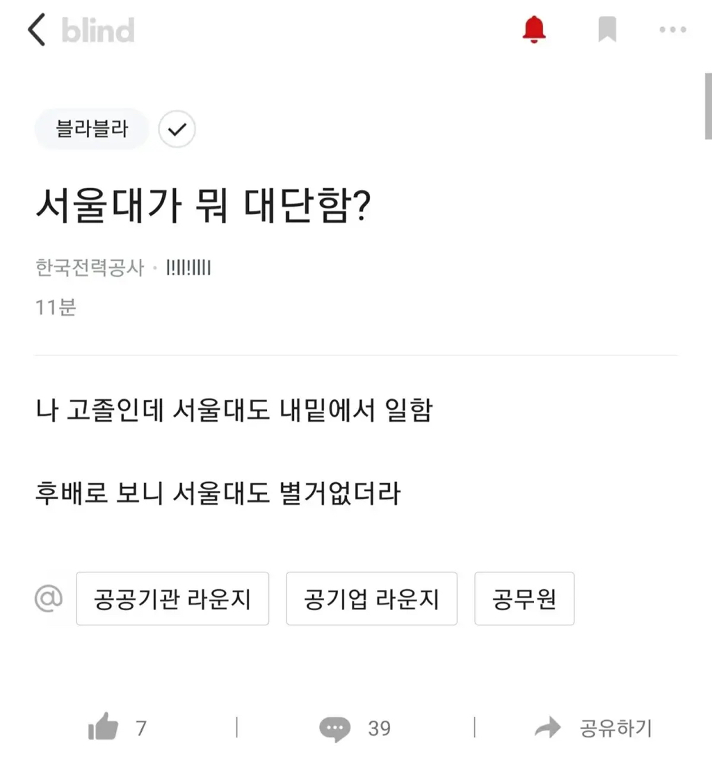 작성자이러지마제발루 작성시간 26.01.24 아는 한전남도 자아 ㅈㄴ 비대한데 왜그럴까..근데 스펙에 비해 너무 좋은 기업들어가서 돈 잘버니깐 그런거같긴하다.. 꼭 자기가 하는 일(책상사진찍고), 차자랑 디지게함ㅋㅋㅋ