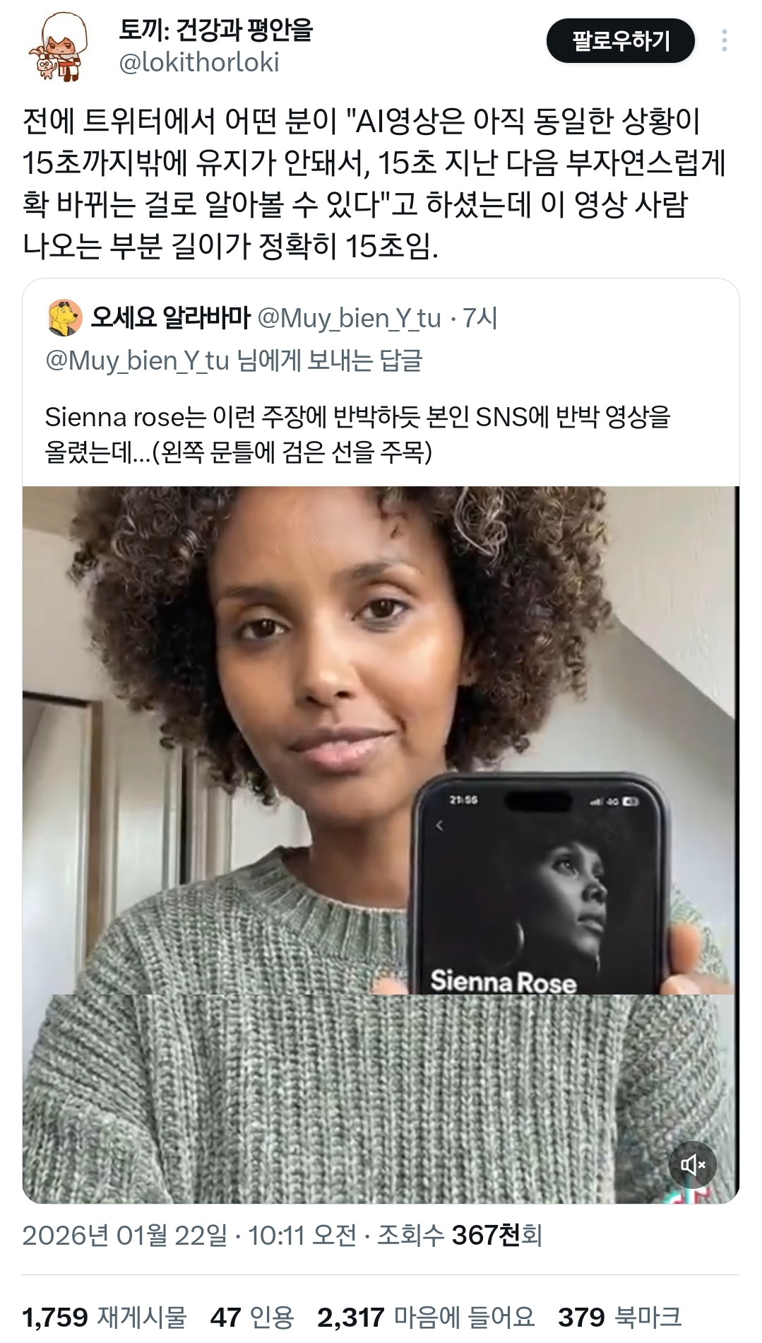본인은 진짜 사람이라고 인증하는 영상을 올렸는데