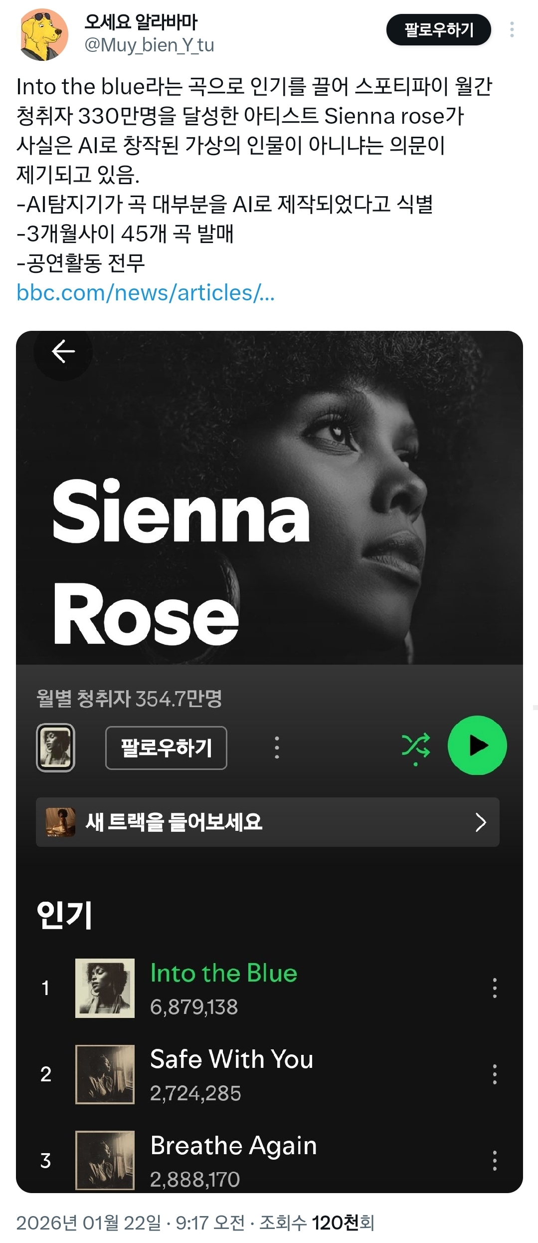 작성자2026다옴 작성시간 26.01.22 나 ai가수 로지 좋아하는데 그냥 밝히면안되나