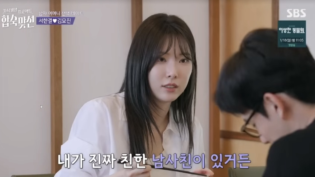 sbs연프 합숙맞선에서 서한결-김묘진이 데이트를 하게 됨
