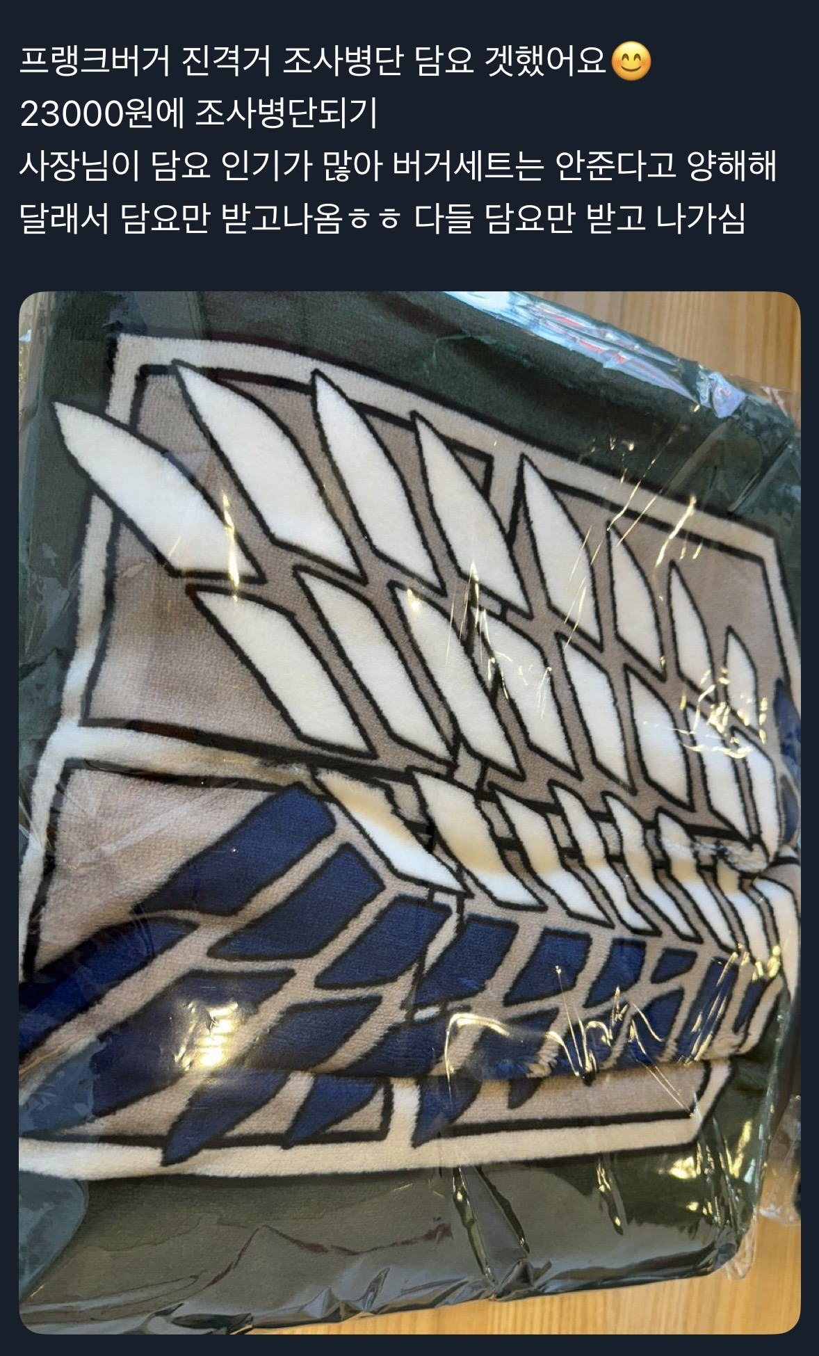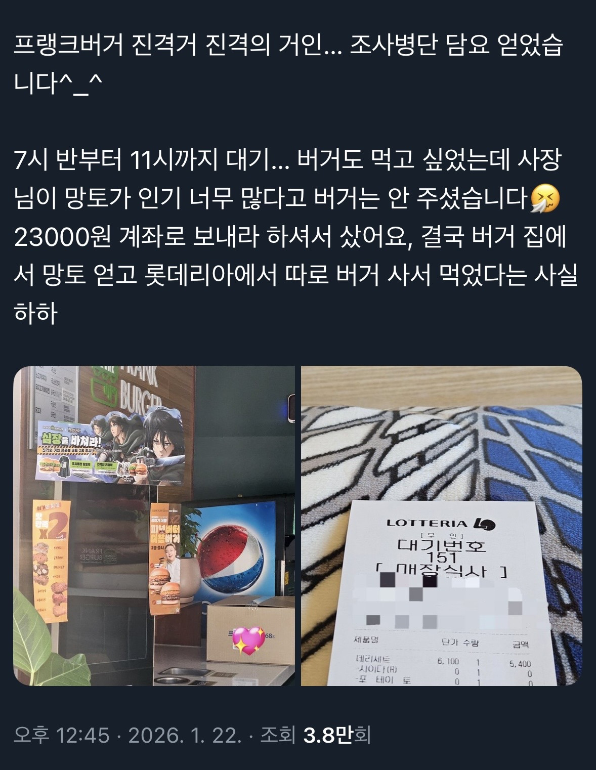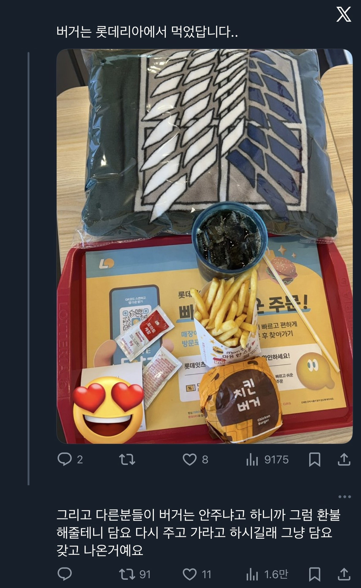 [흥미돋]햄버거 사면 담요 증정인데 담요가 인기가 많다고 버거는 안줌.jpg 작성자Sunmoonstar02|작성시간26.01.22|조회수123,799 목록 댓글 322 글자크기 작게가 글자크기 크게가 출처: https://theqoo.net/square/4069903556더쿠 - 햄버거 사면 담요 증정인데 담요가 인기가 많다고 버거는 안줌.jpg여기를 눌러 링크를 확인하세요theqoo.net버거세트 23000원 이라고 함 다음검색 현재 게시글 추가 기능 열기 북마크 공유하기 신고 센터로 신고 댓글 댓글 322 댓글쓰기 답글쓰기 댓글 리스트 작성자긁 수저 | 작성시간 26.01.23 냅둬융 작성자유지몽몽 | 작성시간 26.01.23 일빠들이 손해보고살겟다는데 모 알아서하슈 작성자새해엔 다이어트 해야돼 | 작성시간 26.01.24 탈세를 옹호하네 저 사장이 저것만 저러겠어..? 다른 콜라보할때도 저러지,,? 작성자좋은감자만나 | 작성시간 26.01.24 뭔 개소리지 작성자호랑이귀여워 | 작성시간 26.01.31 매국노 일빠들 평생 손해보고 살아♡ 댓글 전체보기