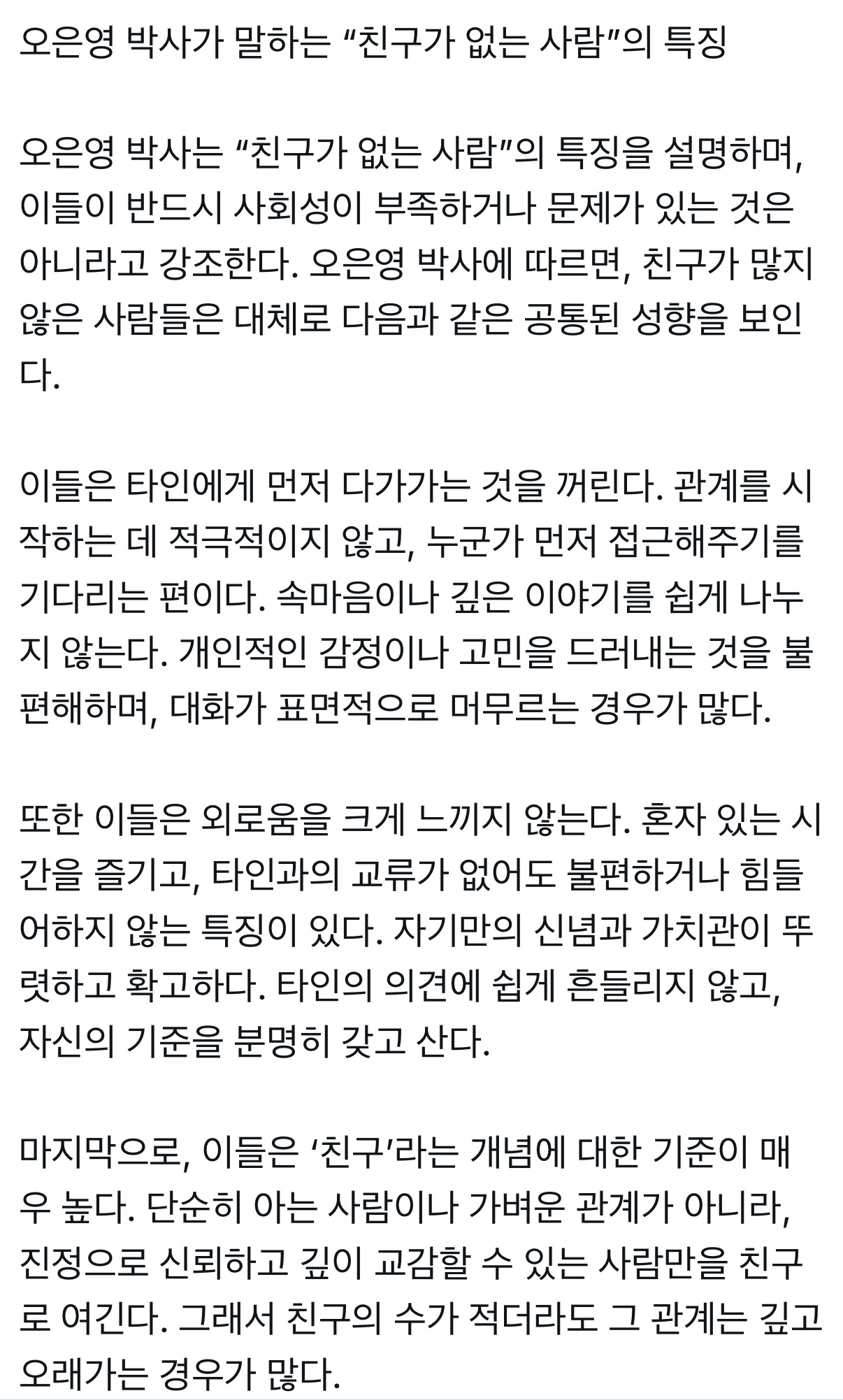 극소수의 오랜친구 심지어 자주만나지도 않음