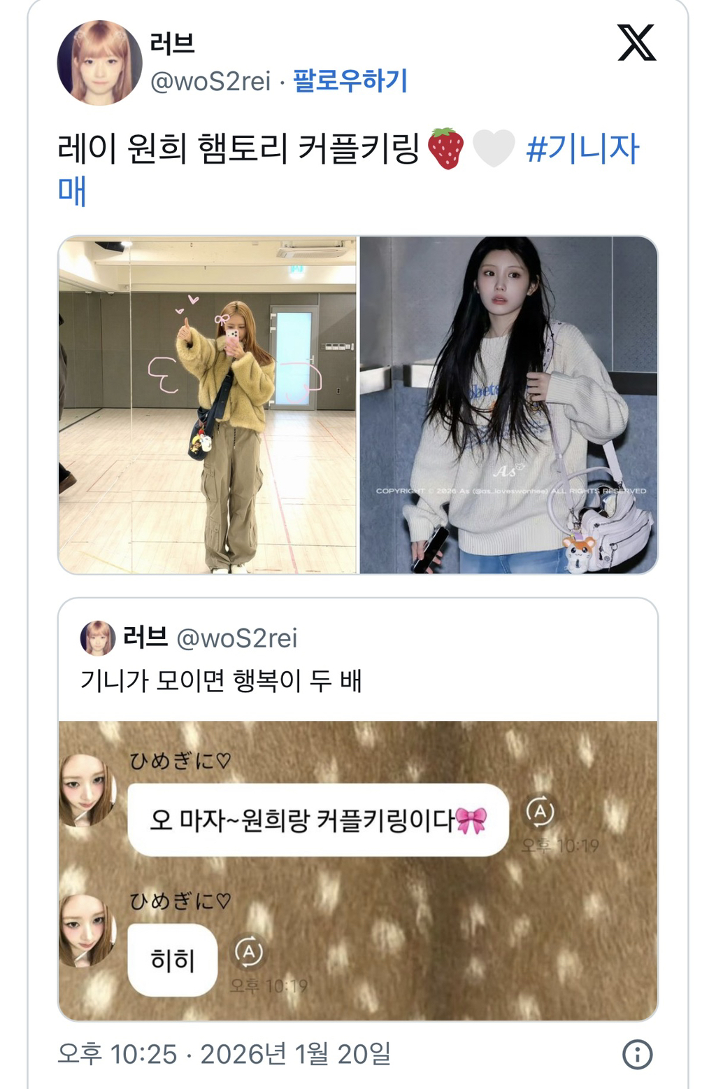 레이는 원희의 파우치 🩷 원희는 레이공주꺼 🪽 오네쨩 (언니) 🤍