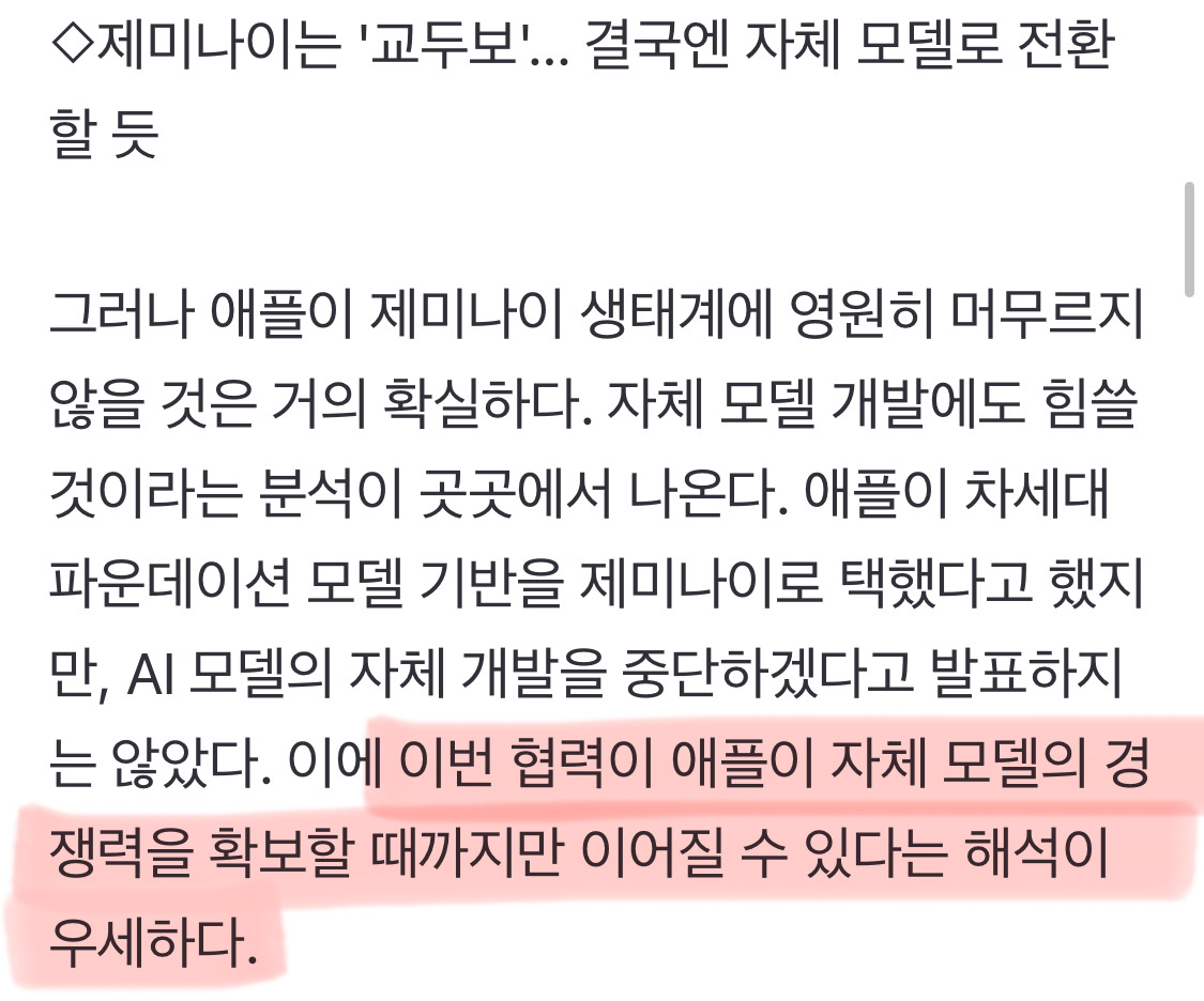 제미나이 탑재는 했지만 애플 유저들 데이터는 애플 내에서만 공유(확보)한다고 유튜브에서 봤었는데 -