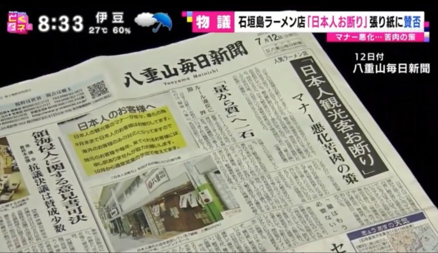 “일본인 관광객의 매너가 점점 악화되고 있어서 3개월간 거절하겠다는 내용”