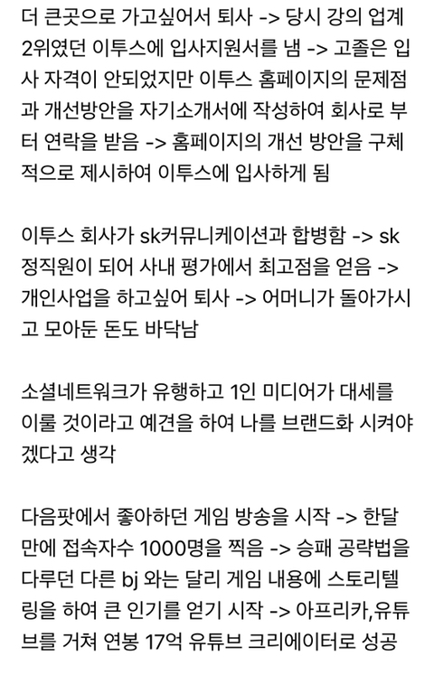 작성자내가이겨 작성시간 26.01.23 대도 생방보면 이 아저씨 여자얘기빼고는 통찰력 좋은 거 느낌 솔직히 ..그래서 성공했나싶음