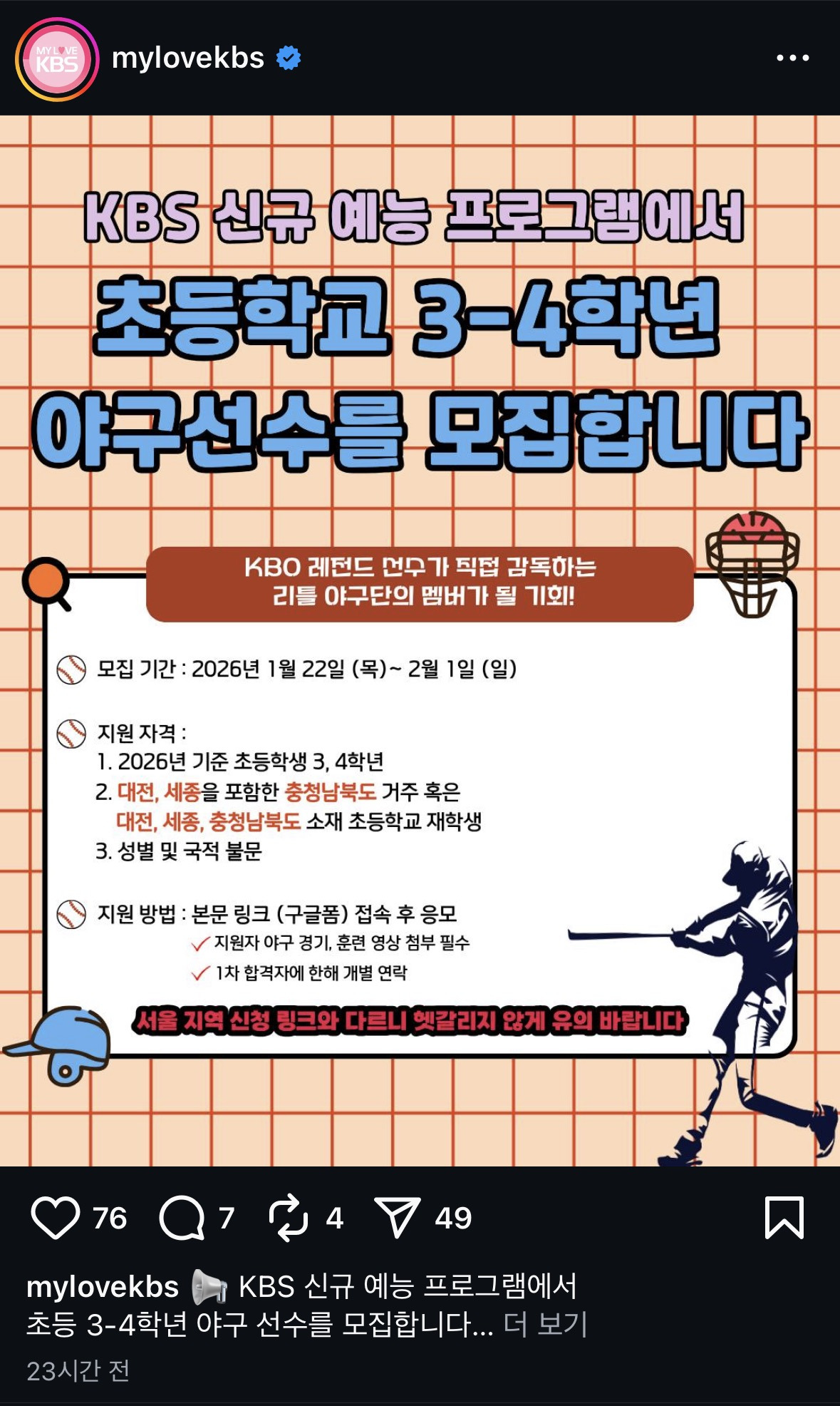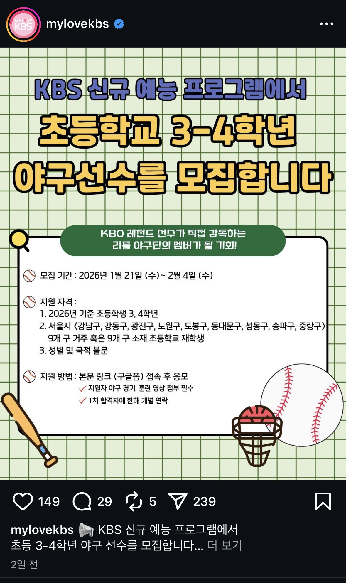 [흥미돋]KBS에서 준비중인 리틀 야구 신규 예능 작성자졸업하자|작성시간26.01.23|조회수7,043 목록 댓글 14 글자크기 작게가 글자크기 크게가 출처: https://theqoo.net/square/4071046546더쿠 - KBS에서 준비중인 리틀 야구 신규 예능레전드급 감독 누가 하시려나.. 출처 https://www.instagram.com/p/DTw_-zfkqaF/?igsh=MTBvMDFpbjlyYnlwZA==theqoo.net감독 레전드급 선수라는데 누가 하시려나.. 다음검색 현재 게시글 추가 기능 열기 북마크 공유하기 신고 센터로 신고 댓글 댓글 14 댓글쓰기 답글쓰기 댓글 리스트 작성자노엘카다이프 | 작성시간 26.01.23 여자 아이들도 많이 나왔음 좋겠다!! 작성자My dilemma | 작성시간 26.01.23 성별 국적 불문이네 여자 선수들도 꼭 나왔으면! 작성자달총 | 작성시간 26.01.23 옛날 슛돌이 같은 예능 만들어지나보다 재밌을듯 ㅋㅋㅋ 작성자Zhao Lusi | 작성시간 26.01.24 ㅋㅋㅋㅋㅋ나중에 프로데뷔하면 자료화면으로 쓰이겠네 작성자다스 베이더 | 작성시간 26.01.24 뭔가 감독 김태균이 할 것 같다 댓글 전체보기