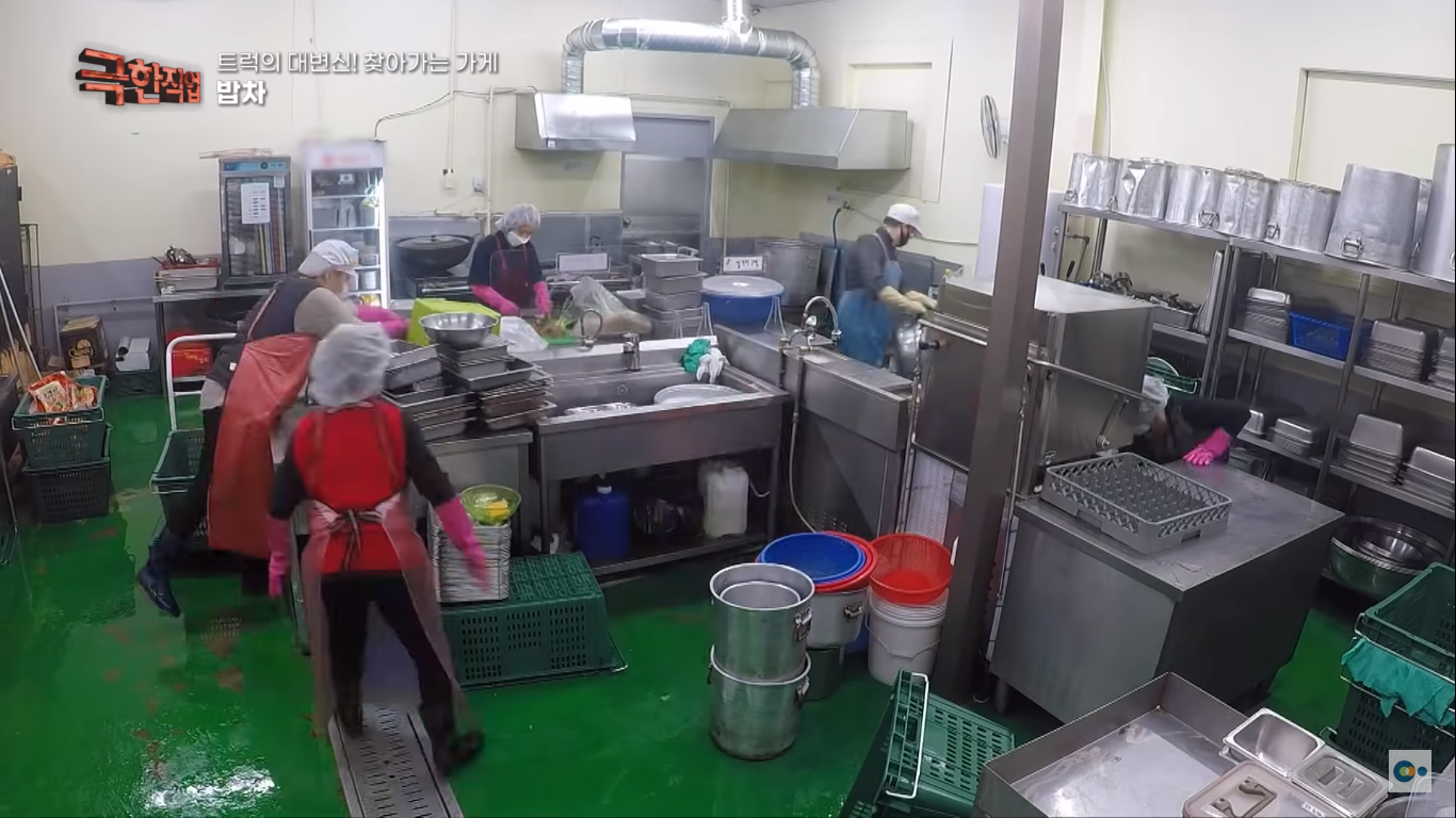 밥차 공장에서는 스태프들이 먹은 그릇을 박박 씻는 것이