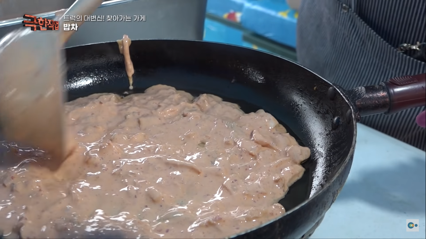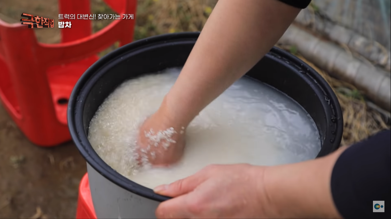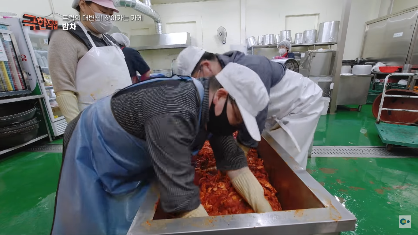 남자 두 명이 힘을 와자작 써서 잘 섞이게 한다고