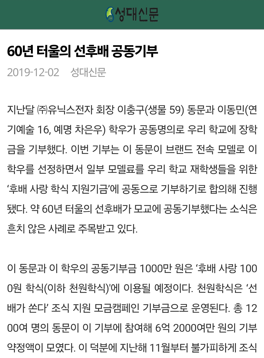 성균관대학교 후배사랑학식지원기금