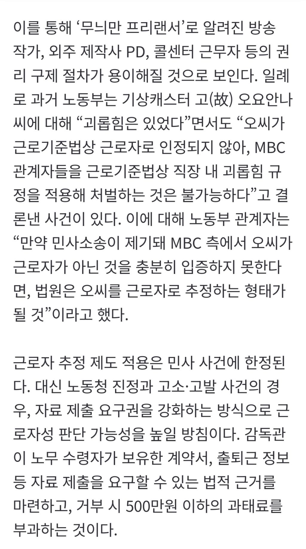 작성자independ 작성시간 26.01.23 오 프리랜서라도 근로자와 동등하게 대우받을 수 있겠네 요건 제미나이가 말해 준 거
