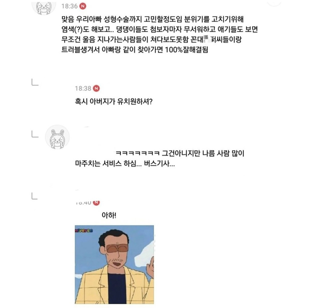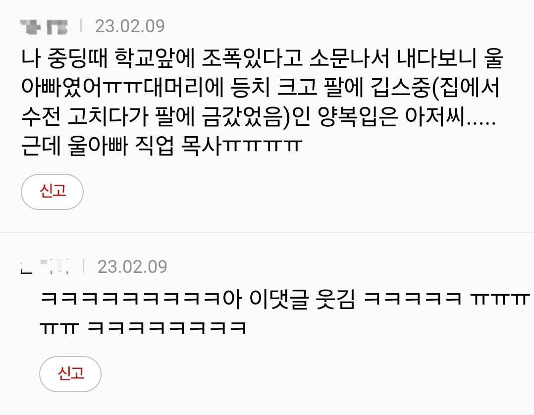 작성자카드값줘체ㄹl 작성시간 26.01.24 작은 아빠 ㅋㅋㅋ 중국에 20년 넘게살아서 딱 중국인조폭마냥 머리 반삭에 금목걸이 금팔찌 금반지 두꺼운거 차고있는데 키크고 덩치커서 한국올때 같이 어디가면 다들 당황함