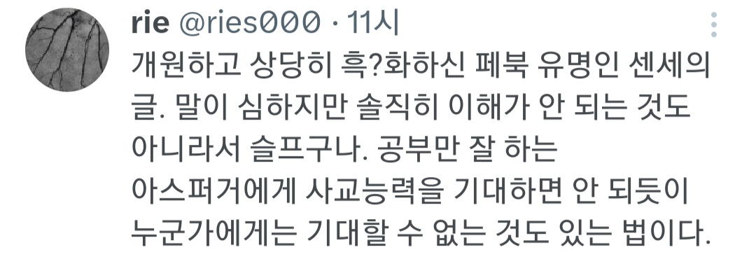작성자사회성 없는걸 mbti로 포장하지 마세 작성시간 26.01.24 네 덕분에 의사 편견 더 심해졌어요 감사합니다