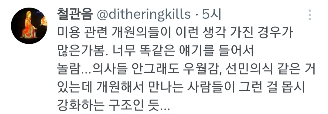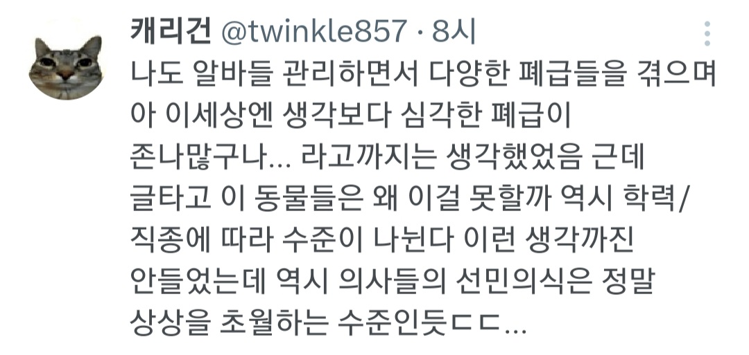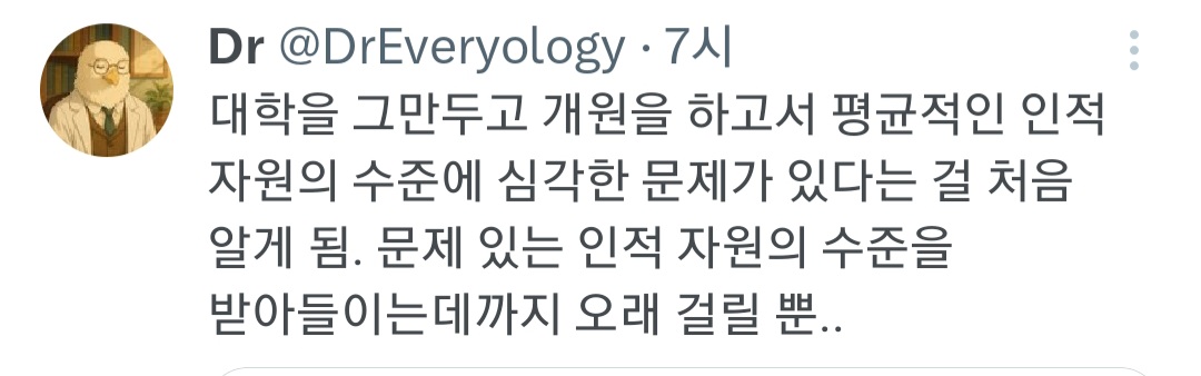 답댓글 작성자사회성 없는걸 mbti로 포장하지 마세 작성시간 26.01.24 22 왜 본인이 상대할 환자가 다 똑같을거라고 생각하지?