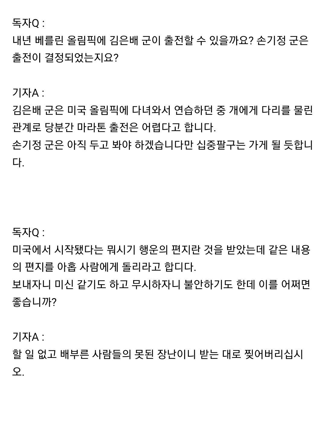 내년 베를린 올림픽에 김은배 군이 출전할 수 있을까요? 손기정 군은 출전이 결정되었는지요?