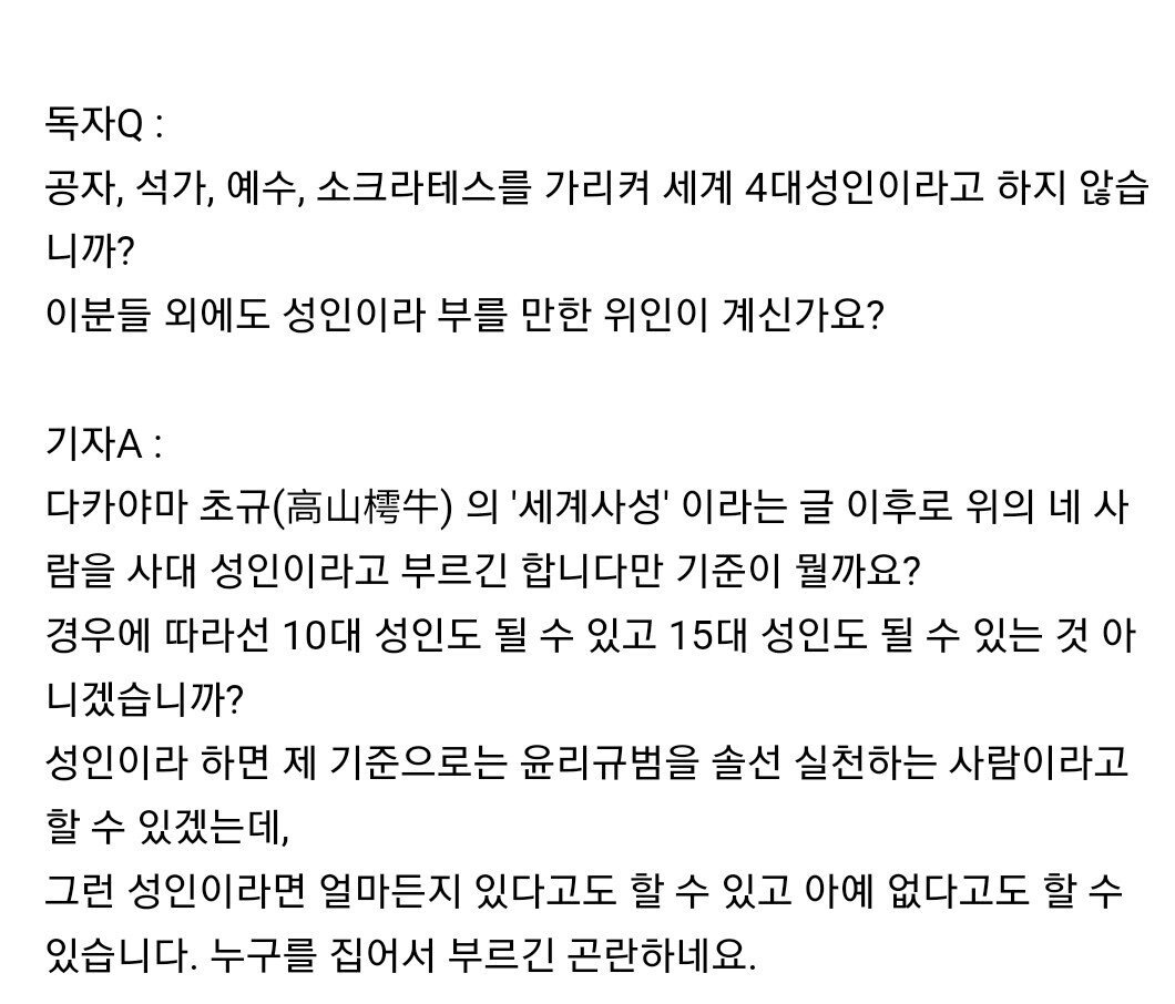 다카야마 초규(高山樗牛) 의 '세계사성' 이라는 글 이후로 위의 네 사람을 사대 성인이라고 부르긴 합니다만 기준이 뭘까요?
