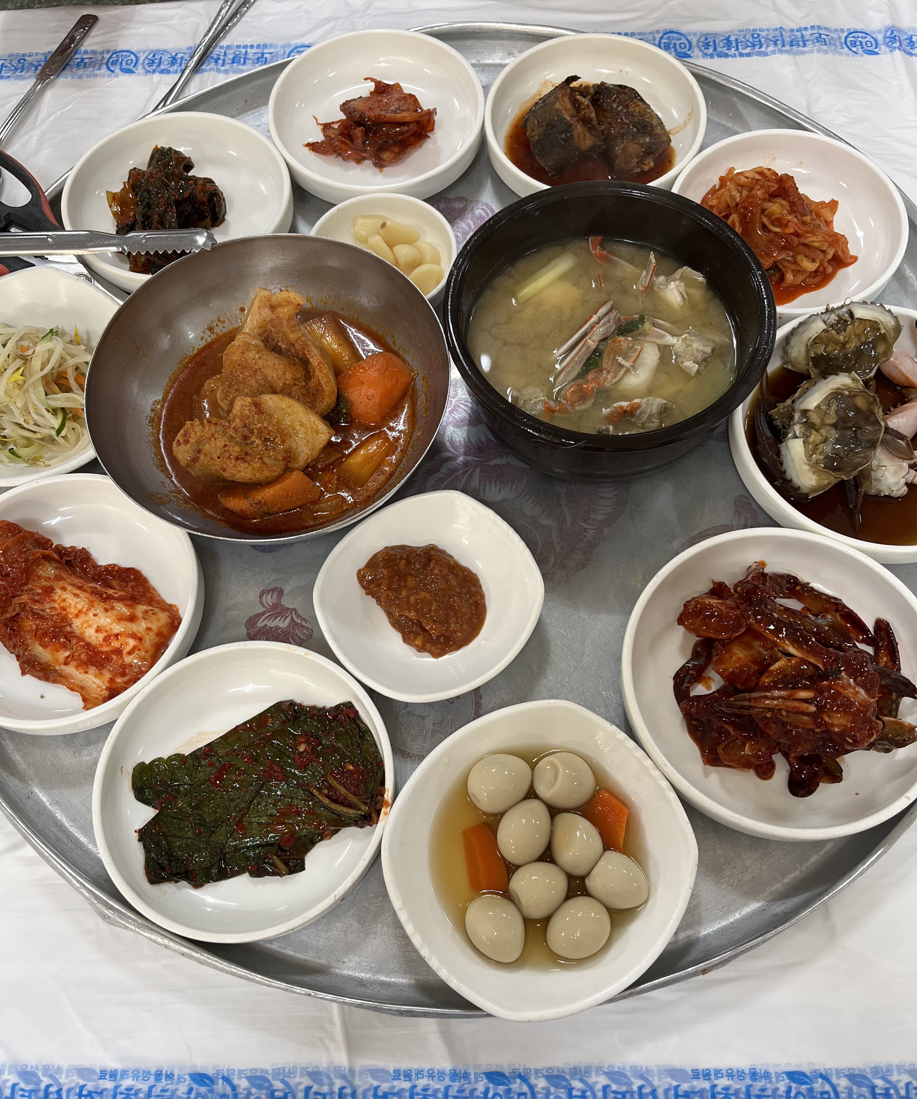 진짜 다 맛있다는게 포인트임....메추리알 깻잎 무생채 갓김치 꽃게된장찌개 돌게장 모든게....존맛