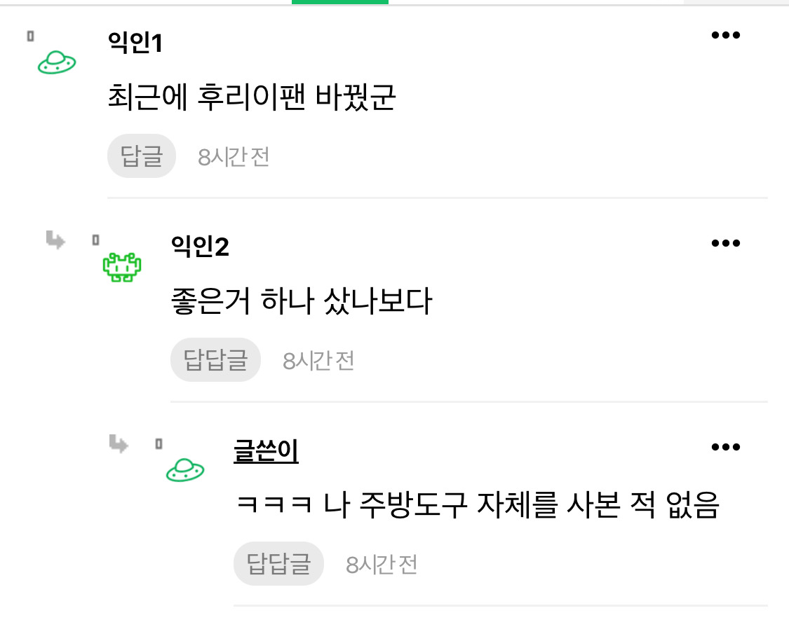 작성자구가지니 작성시간 26.01.26 아ㅋㅋㅋㅋ개웃김ㅋㅋㅋㅋ집초대했는데 후라이팬부터 찾으면 개웃기겠다