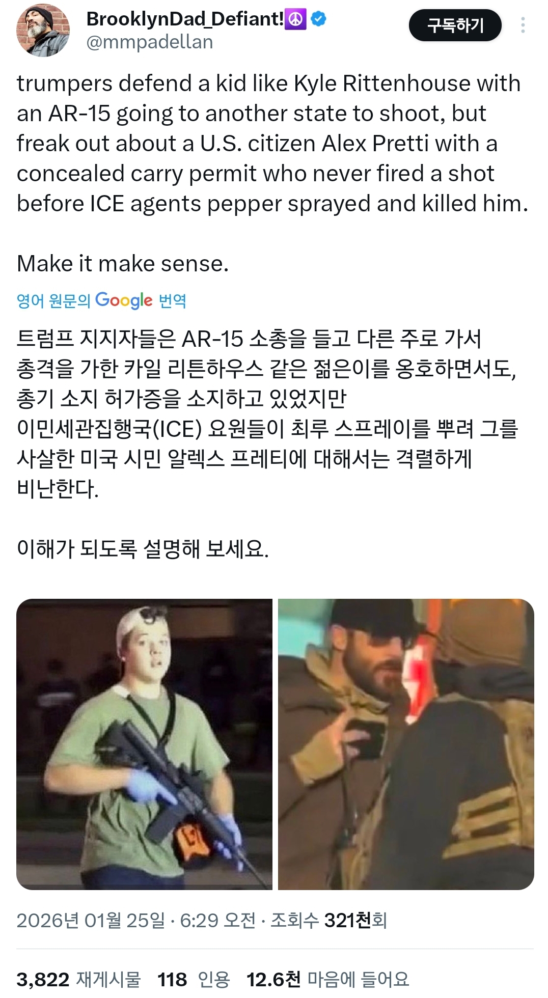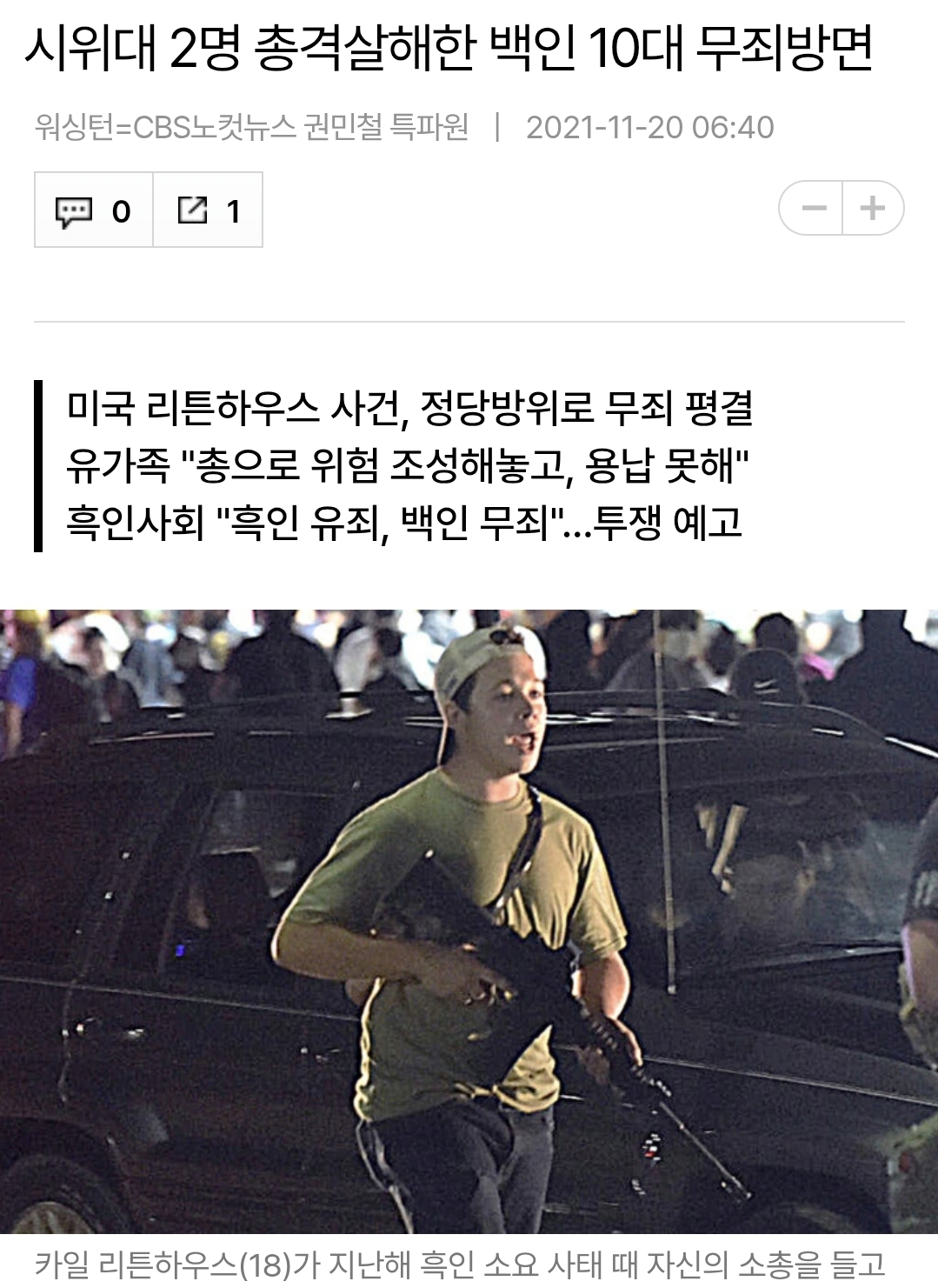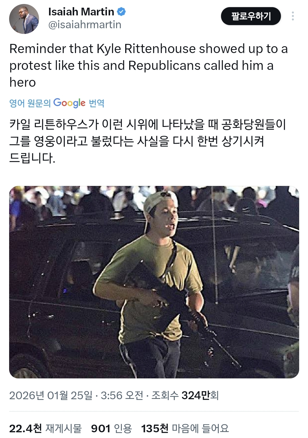 극우들 이때는 얘 보고 환호했음 총기를 소지하고 사람을 쏴죽였는데도