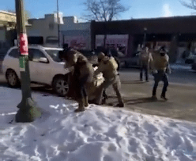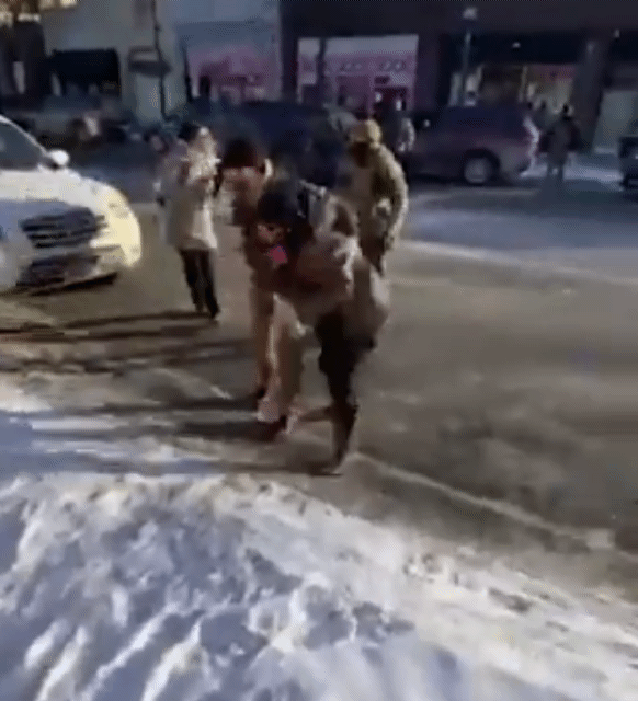 ICE가 여성시민에게 최루탄 스프레이를 뿌리려고 하자