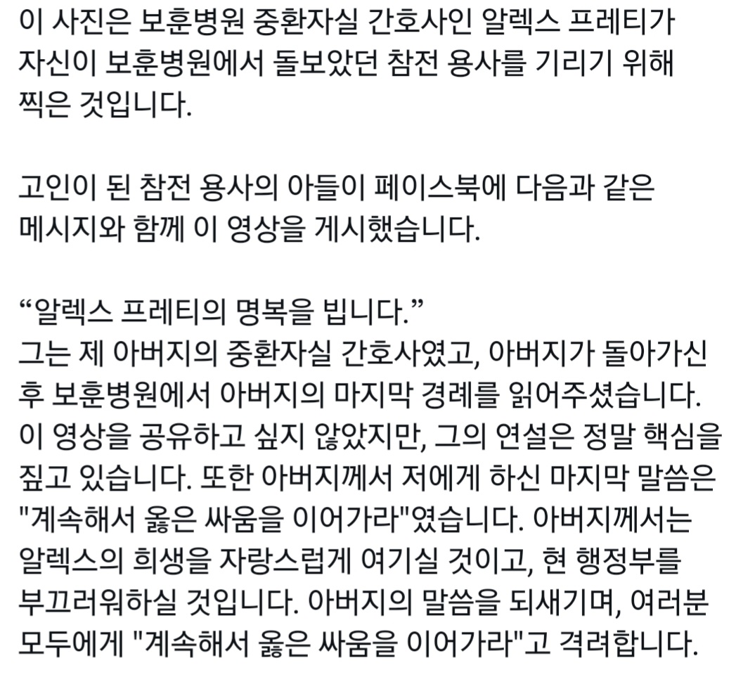 생전 알렉스가 보훈병원에서 참전용사를 기리는 모습을 공유한