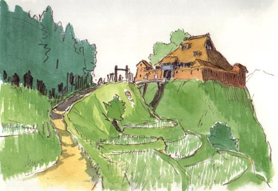 영주는 높은 지붕의 콧날에 내리꽂혔다.
