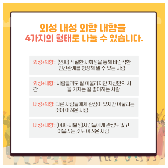 작성자삼성생명 작성시간 26.01.25 난 내성 외향이랑 내성 내향 둘 중 하나 같다
