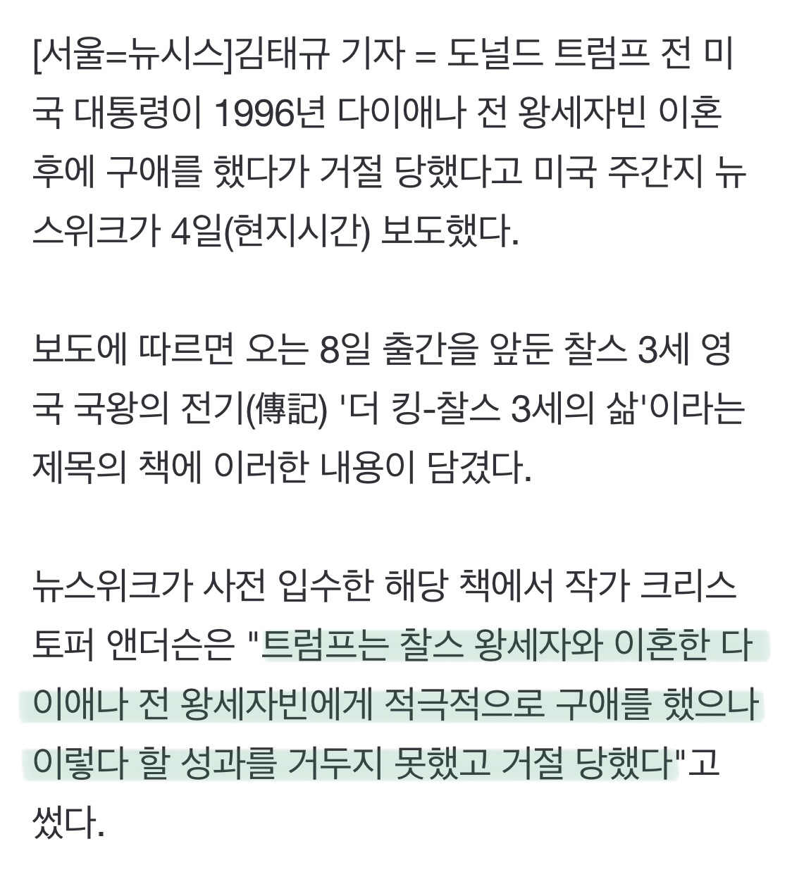 [스크랩] [흥미돋]"트럼프, 英 다이애나빈 이혼 뒤 구애 했다가 거절" 작성자암낫큣|작성시간26.01.25|조회수35,125 목록 댓글 31 글자크기 작게가 글자크기 크게가 출처 : 뉴시스https://n.news.naver.com/article/003/0011519422?sid=104"트럼프, 英 다이애나빈 이혼 뒤 구애 했다가 거절"기사내용 요약 출간 앞둔 찰스 3세 英 국왕 전기에 트럼프 내용 소개 다이애나, 스토킹 토로…트럼프 "완전한 거짓말" 부인 [서울=뉴시스]김태규 기자 = 도널드 트럼프 전 미국 대통령이 1996년 다n.news.naver.com 다음검색 스크랩 원문 : *여성시대* 차분한 20대들의 알흠다운 공간 현재 게시글 추가 기능 열기 북마크 공유하기 신고 센터로 신고 댓글 댓글 31 댓글쓰기 답글쓰기 댓글 리스트 작성자( 본인 닉네임 ) | 작성시간 26.01.25 진짜 싫은데그래도 살 가능성은 있었던 거잖아 너무 슬픙 작성자줫터질수밖에없었던것입니다 | 작성시간 26.01.25 역겹다 작성자김첨지김장김치 | 작성시간 26.01.25 도람뿌한테 갔음 그래도 살았을듯.. 영부인되고.. 작성자좃나나 | 작성시간 26.01.25 왓더 작성자디스이즈럭키걸 | 작성시간 26.01.26 ㅅㅂ… 댓글 전체보기