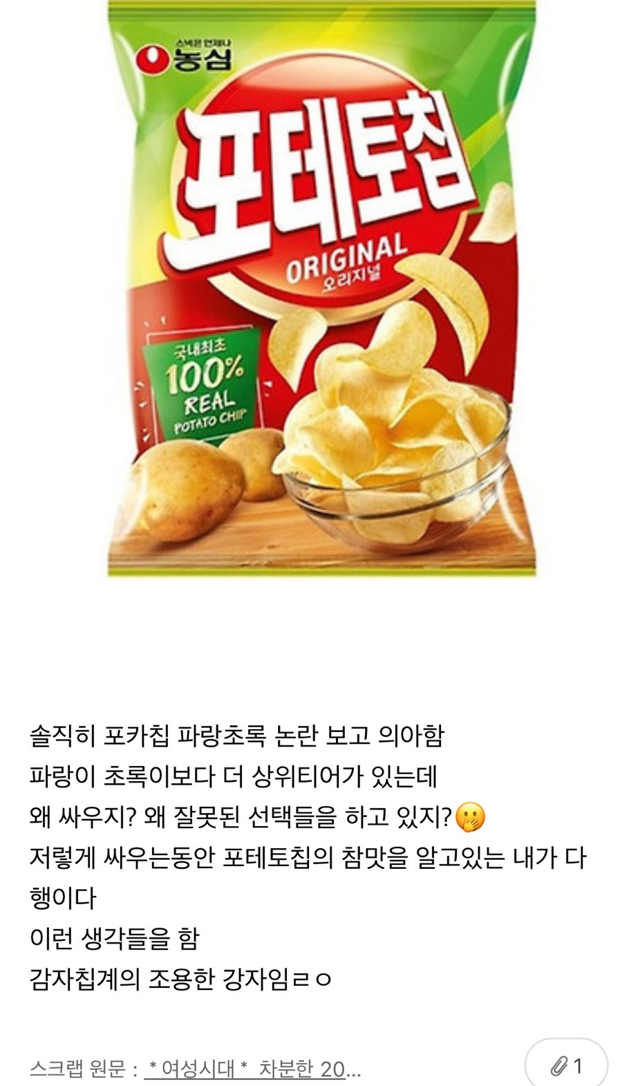 [스크랩] [흥미돋]감자칩중 최고는 포테토칩 오리지널이라 생각하는 달글 작성자아주가라너아주가|작성시간26.01.25|조회수7,009 목록 댓글 60 글자크기 작게가 글자크기 크게가 출처: https://m.cafe.daum.net/subdued20club/ReHf/4726522?svc=cafeapp감자칩중 최고는 포테토칩 오리지널이라 생각하는 달글여기를 눌러 링크를 확인하세요m.cafe.daum.net이글보고 포테토칩 사먹었는데 찐. 다음검색 스크랩 원문 : *여성시대* 차분한 20대들의 알흠다운 공간 현재 게시글 추가 기능 열기 북마크 공유하기 신고 센터로 신고 댓글 댓글 60 댓글쓰기 답글쓰기 댓글 리스트 작성자칼리우티스 | 작성시간 26.01.25 개인정 식감도 그렇고 기름지지도않고 작성자해피해피햅피 | 작성시간 26.01.25 아 인정 작성자다락쿵 | 작성시간 26.01.25 먹을줄 아네 ㅋ 작성자진절머리남 | 작성시간 26.01.25 제일 감자같아 세계 유명한 감자칩 다 먹어도 너가 최고야 ㅜㅜ 작성자여시중독자 | 작성시간 26.01.26 넘 맛남 다들 포카칩 먹을 때 난 포테토칩 댓글 전체보기
