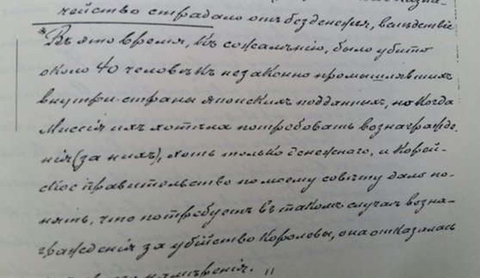그는 ‘차마 글로 옮기기 어렵다’는 표현으로 인간으로서 그 참혹한 상황을 지켜본 감정을 말하고 있다. 이는 일반적으로 우리가 알고 있는 것처럼 명성황후가 칼에 베어져 숨진 뒤 그 시신이 불태워진 게 아니라, 아직 숨이 끊어지지 않은 상태에서 불태워지면서 고통스럽게 죽어가는 왕비의 모습을 바라보며 인간적으로 복잡한 심경이었을 것을 암시하고 있다.