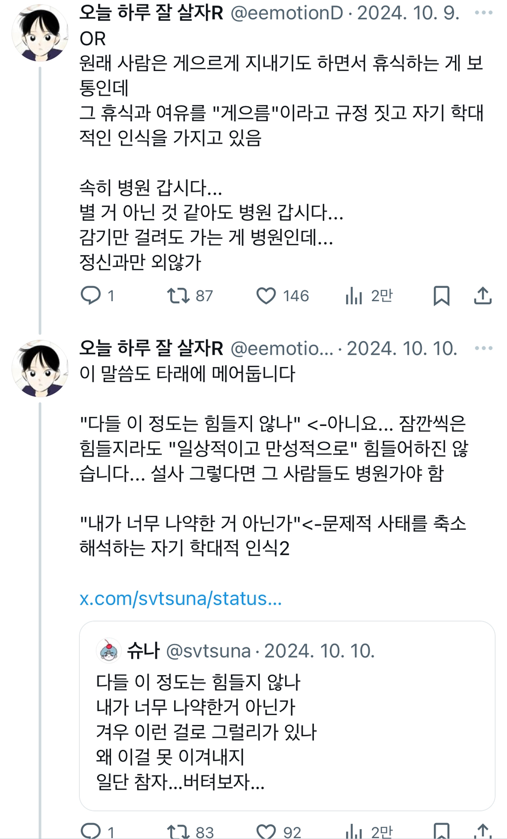 작성자리듬이둠둠 작성시간 26.01.26 본인도 알걸 이게 진짜 게을러서 하는건지 무기력인지 .. 무기력은 진짜 말로 표현 못함 .. 정말 무기력 때문에 아무 생각을 못함 ..