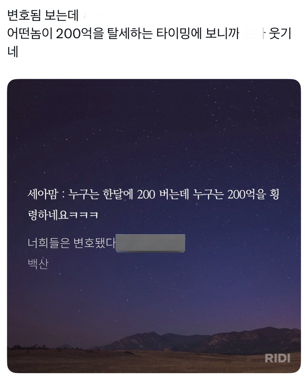 [기타]200억 탈세를 예지한 사람 작성자로또여내게로오라|작성시간26.01.26|조회수19,623 목록 댓글 5 글자크기 작게가 글자크기 크게가 출처: 여성시대 로또여내게로오라https://x.com/fegetiger/status/2015505966356406681?s=46문제시 수정! 다음검색 현재 게시글 추가 기능 열기 북마크 공유하기 신고 센터로 신고 댓글 댓글 5 댓글쓰기 답글쓰기 댓글 리스트 작성자저속멜1섭 | 작성시간 26.01.26 ㅅㅂㅋㅋㅋㅋㅋㅋ 작성자sonar | 작성시간 26.01.26 찾아보니 완결된건데 이런 우연이ㅋㅋㅋ 작성자지우 | 작성시간 26.01.26 ㅋㅋㅋㅋㅋㅋㅋㅋㅋㅋㅋㅋㅋㅋㅋㅋㅋㅋㅋㅋ 작성자너너뉘기야 | 작성시간 26.01.26 설마했는데 너변호ㄷㄷㄷㅋㅋㅋㅋㅋㅋㅋ 작성자밸라곰 | 작성시간 26.01.26 싸갏 개웃겨요 댓글 전체보기
