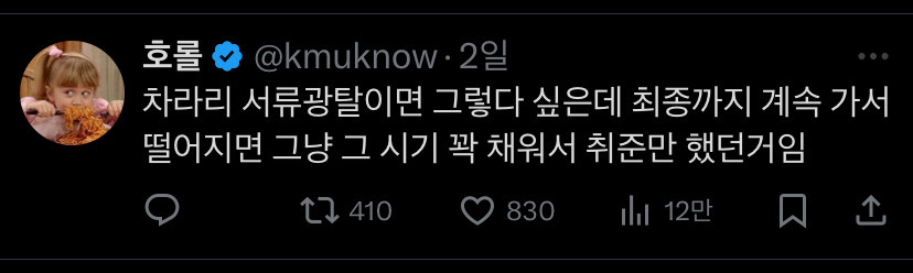작성자star lost 작성시간 26.01.26 다들 너무 열심히 살아… 대충 삽시다 ㅠㅠ