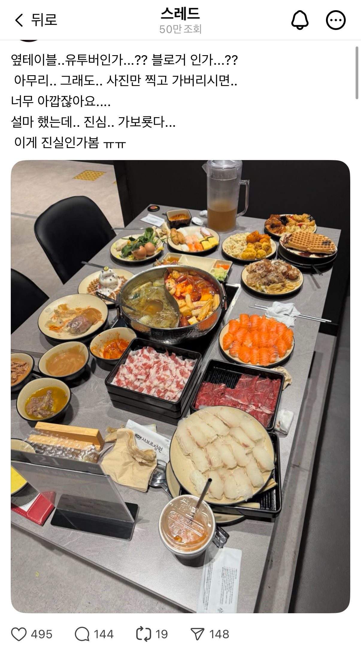 작성자어그로그만 작성시간 26.02.15 ㅁㅈ.. 나 지인 광고촬영 따라갔는데 이렇게 찐으로 음식 많이 주는줄 몰라서 배부른 상태로 갔는데 음식 아까워서 내가 다먹음 ㄹㅇ 배불러죽을뻔