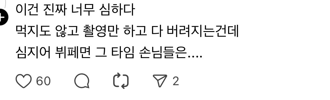 작성자탱글빗 작성시간 26.02.08 식당은아니고 카페알바할때 봤는데 홍보효과 ㅈㄴ커서 ㅇㅇ 걔네도 안먹고 사진만 찍다가감 우린 알바생들이 다먹음