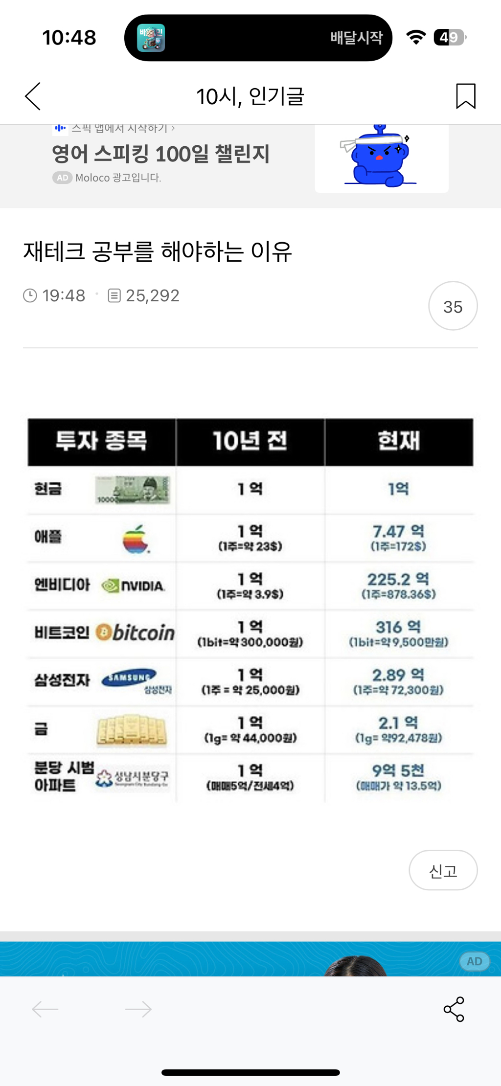 심지어 인플레이션 적용하면 10년 전 1억은 현재 8,200만원 정도로 깎여있음 ㄷㄷ