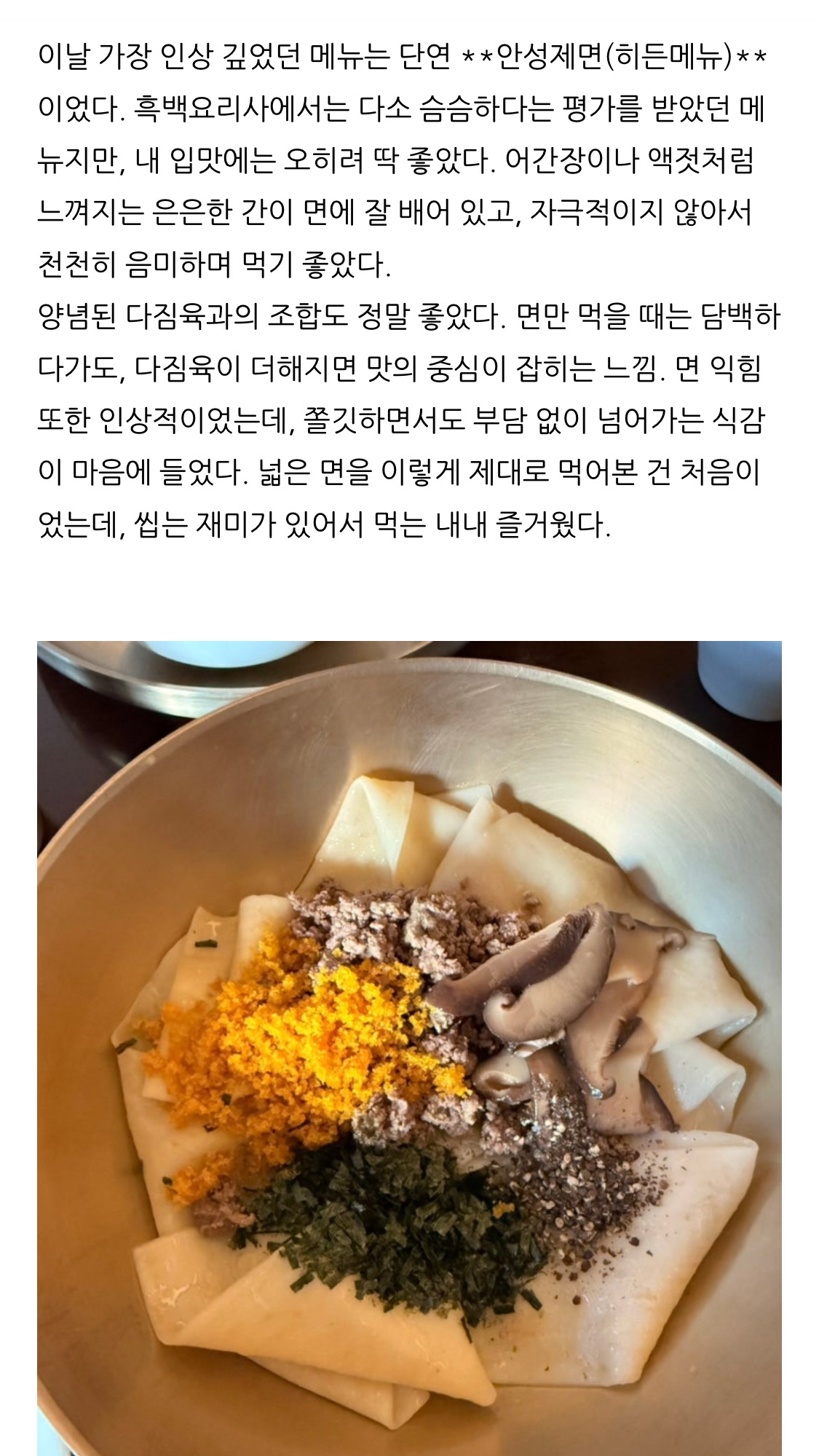[흥미돋]안성재에게 탈락후 '안성제면' 출시한 김도윤 셰프 (+후기) 작성자배고픈데참는다|작성시간26.01.27|조회수59,566 목록 댓글 30 글자크기 작게가 글자크기 크게가 출처: https://www.dmitory.com/issue/398161244김도윤 셰프가 운영하는 업장 두 곳중 면서울 메뉴인듯윤서울이 미슐랭 원스타면서울은 미슐랭 가이드 등재후기 다음검색 현재 게시글 추가 기능 열기 북마크 공유하기 신고 센터로 신고 댓글 댓글 30 댓글쓰기 답글쓰기 댓글 리스트 작성자고래가난다요 | 작성시간 26.01.27 개마쉿어.. 작성자2시반 | 작성시간 26.01.27 아 저거 궁금했는데ㅋㅋㅋㅋ들기름이라니 맛있어보여,,, 작성자알렉스보즈 | 작성시간 26.01.27 아 내스타일이야.. 작성자대도서관 | 작성시간 26.01.27 ㅋㅋㅋㅋㅋㅋㅋㅋ 아웃겨 작성자우랑 | 작성시간 26.01.28 맛있겠다ㅋㅋㅋ생긴게 다르네 댓글 전체보기