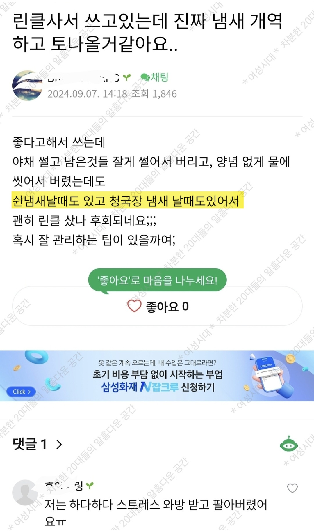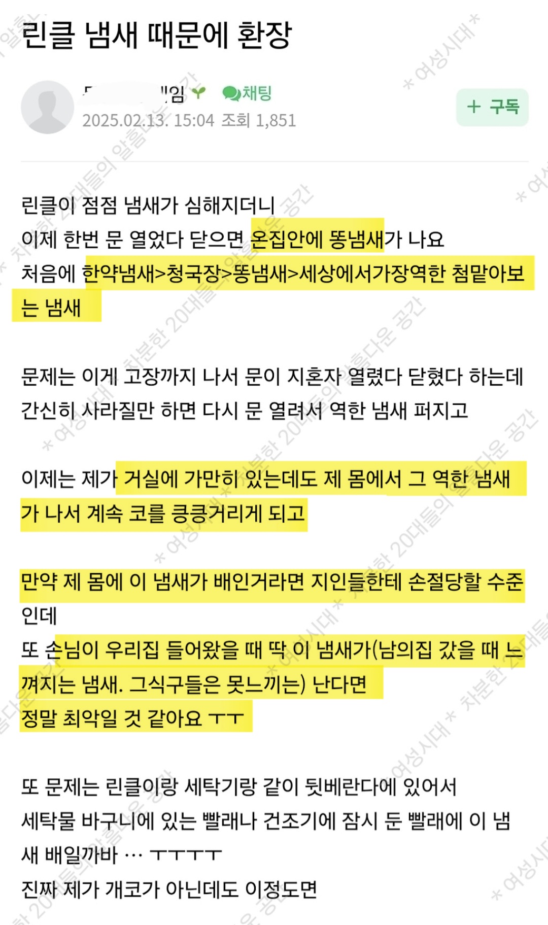 그 살려내는 한달동안 냄새 개심했어ㅠㅠ