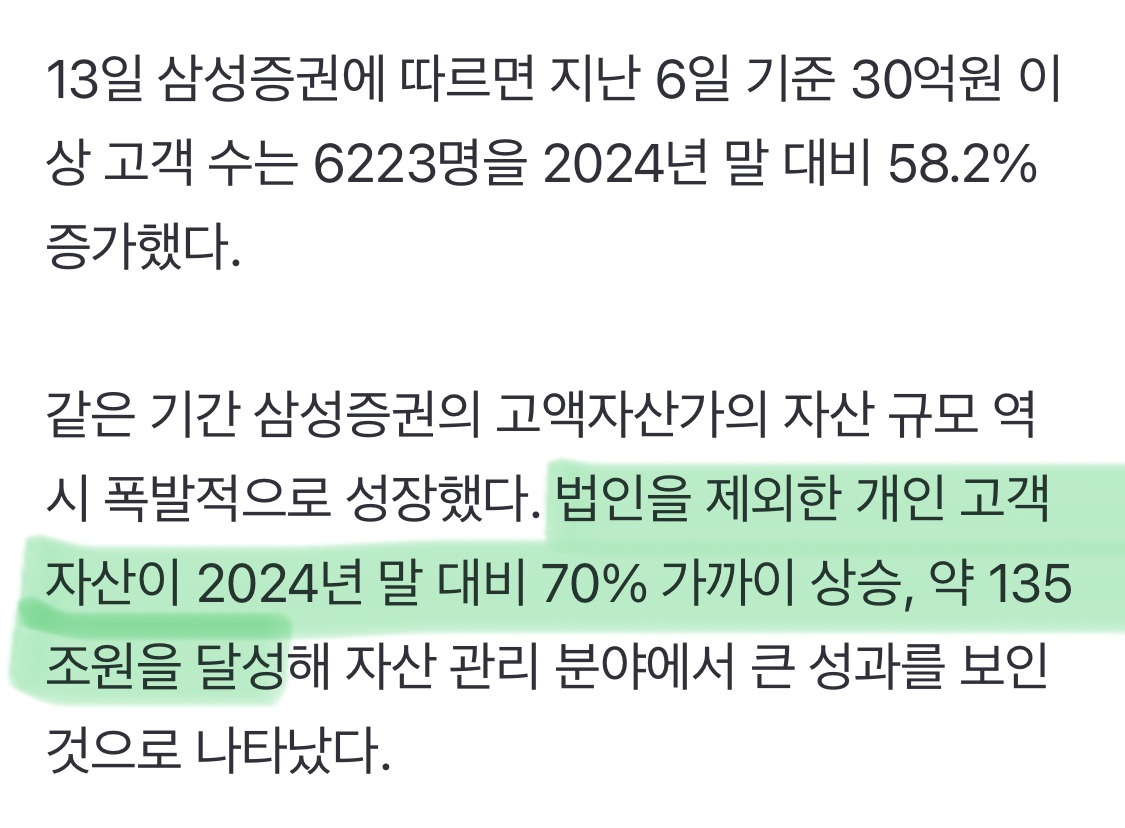 [흥미돋]업계 최초 금융자산 30억 이상 초고액 자산가 6000명 넘은 삼성증권 작성자(본인닉네임).|작성시간26.01.28|조회수14,192 목록 댓글 17 글자크기 작게가 글자크기 크게가 출처: https://n.news.naver.com/article/003/0013707617?sid=101 다음검색 현재 게시글 추가 기능 열기 북마크 공유하기 신고 센터로 신고 댓글 댓글 17 댓글쓰기 답글쓰기 댓글 리스트 작성자행복아사랑혀 | 작성시간 26.01.28 부럽다.. 작성자하얀마음백범김구 | 작성시간 26.01.28 부럽다... 작성자뚜씌뚜씌 | 작성시간 26.01.28 부럽다 ㅠㅠ 작성자천년의노래 | 작성시간 26.01.28 나도 하고 싶다... 작성자기럭기럭 | 작성시간 26.01.28 부럽당 댓글 전체보기