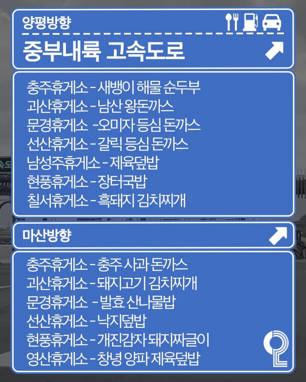 [기타]전국 휴게소 맛집 리스트 종결판 작성자두바이쫀득한쪼코렛|작성시간26.01.29|조회수8,101 목록 댓글 14 글자크기 작게가 글자크기 크게가 출처: 여성시대 두바이쫀득한쪼코렛 다음검색 현재 게시글 추가 기능 열기 북마크 공유하기 신고 센터로 신고 댓글 댓글 14 댓글쓰기 답글쓰기 댓글 리스트 작성자나다시태어날래 | 작성시간 26.01.29 글만봐도 맛있겠다ㅋㅋ 작성자하츄우우우핑 | 작성시간 26.01.29 아냐 주암휴게소는 돈가스가 아니라 차돌된장찌개가 짱이야 개존맛임 작성자착각헌터 | 작성시간 26.01.29 가평휴게소 돈까스.. 작성자삐꺼삐 | 작성시간 26.01.29 북맠 작성자놀면뭐하나재밌겠지 | 작성시간 26.01.29 괴산 휴게소 -남산 왕돈까스 맛없음옷만 두껍고 고기랑 다 분리되고기름기 많고 별로임 돈 아껴 댓글 전체보기