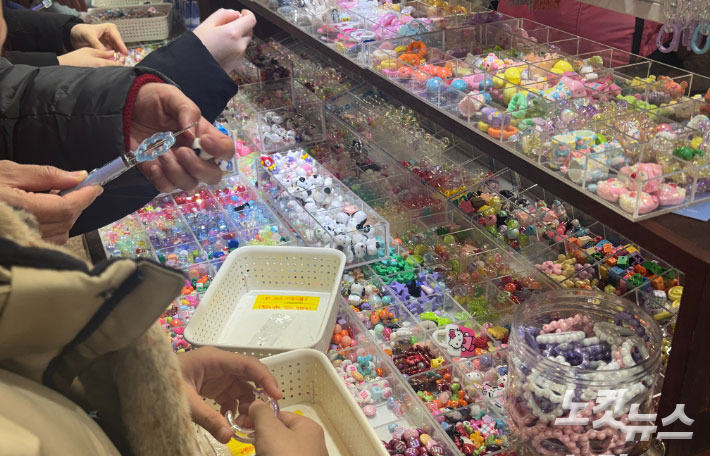 최근 SNS를 중심으로 확산된 '볼꾸(볼펜 꾸미기)' 열풍의 현장이다. 기본 볼펜 몸통에 다양한 파츠를 조합해 자신만의 볼펜을 만드는 방식으로, 동대문 액세서리 상가 일대에 손님들이 몰리고 있다.