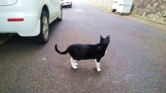 긍까 괭이가 네발로 선상태에서 위에서 아래로