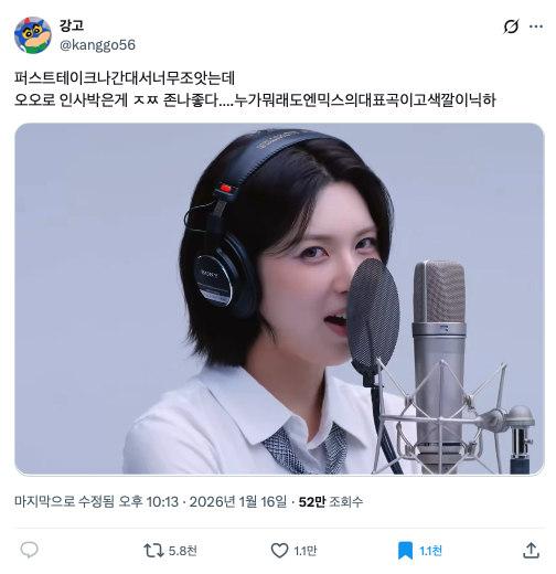 이번에 한번만 부를 수 있는 컨텐츠에서 라이브 말아준 엔믹스