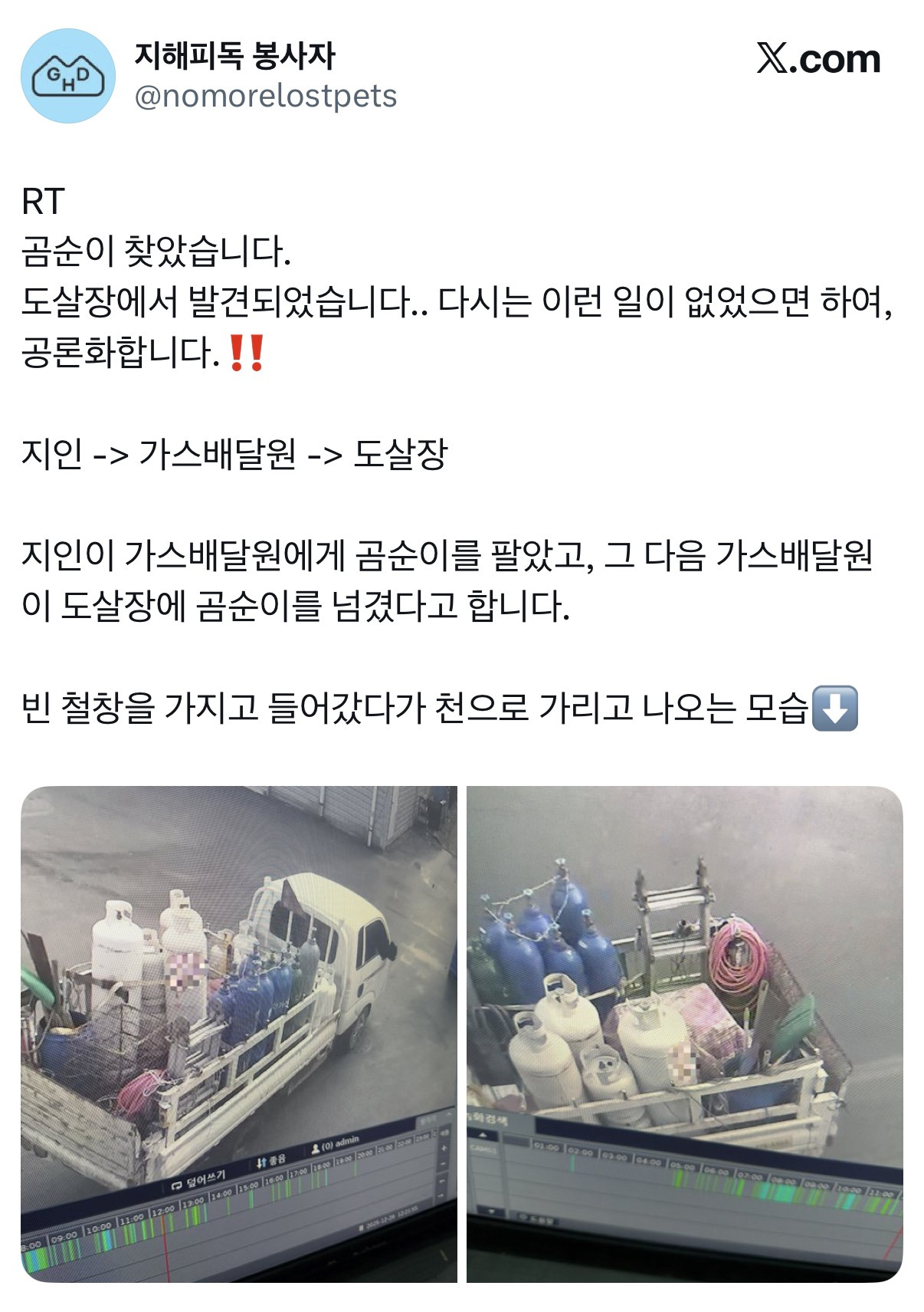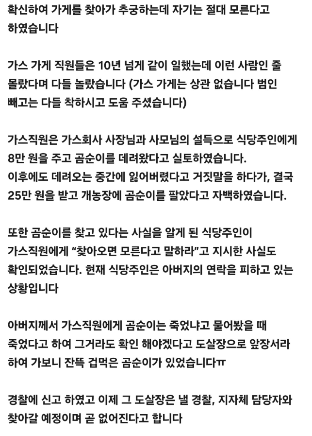 가스 직원은 도살장에 25만원 주고 팔았다고 함.