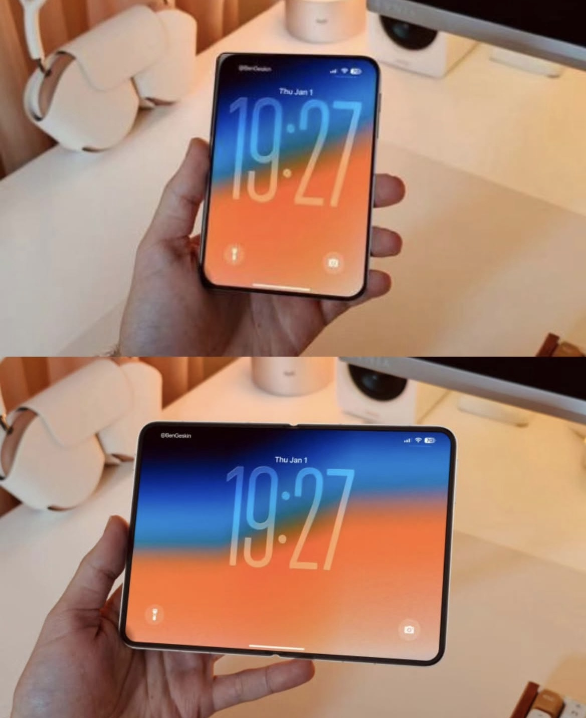 [흥미돋]비율 특이하게 나온 것 같은 아이폰 폴드 작성자나물비비빱|작성시간26.01.29|조회수81,819 목록 댓글 548 글자크기 작게가 글자크기 크게가 출처: 여성시대 나물비비빱늘 그렇듯 디자인이 유출됐죠 유출된 디자인을 토대로 유튜버들이 만든 목업 손안에 쏙 들어오는 사이즈인데 갤럭시 플립처럼 위-아래로 접히는게 아니고 수첩이나 카드 지갑처럼 옆으로 접힘위 - 접밑 - 펴삼성이랑은 확실히 다르긴 한데특이하네...또하나의 혁신이 될런지 다음검색 현재 게시글 추가 기능 열기 북마크 공유하기 신고 센터로 신고 댓글 댓글 548 댓글쓰기 답글쓰기 댓글 리스트 작성자이천오백원 | 작성시간 26.01.31 비율 진자 희한하다펴서쓸땐 폴드보다 나을거같은데접어쓸때 불편할듯 작성자이런머니저런파워 | 작성시간 26.01.31 비율흥미로운데 디자인은 진짜 조잡하다 밤티 작성자지진힙니다 | 작성시간 26.01.31 귀엽다고 사기엔 가격 1도 안귀엽겠지 ㅋ 뻔해.. 작성자luvluv | 작성시간 26.02.02 한 400 하려나 작성자가을가을을 | 작성시간 26.02.03 와 사고싶다 댓글 전체보기