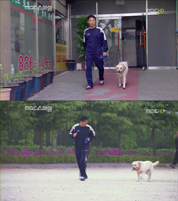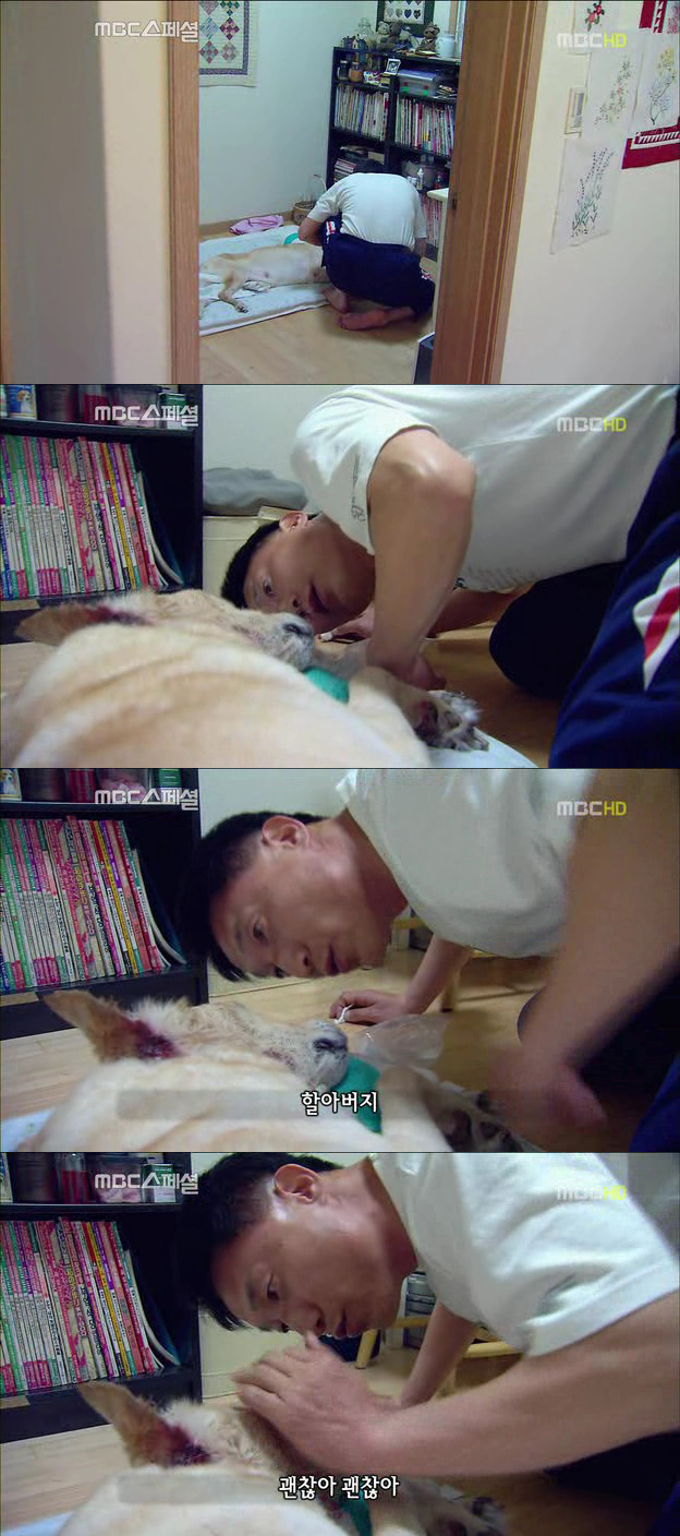 탐나와 산책 중에도 집에 누워있는 대부가 걱정되는 재석 씨다.