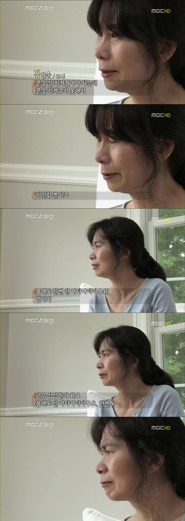 대부의 가는 모습을 영상으로 보게된 인순 씨는 내내 눈물만 흘릴 뿐