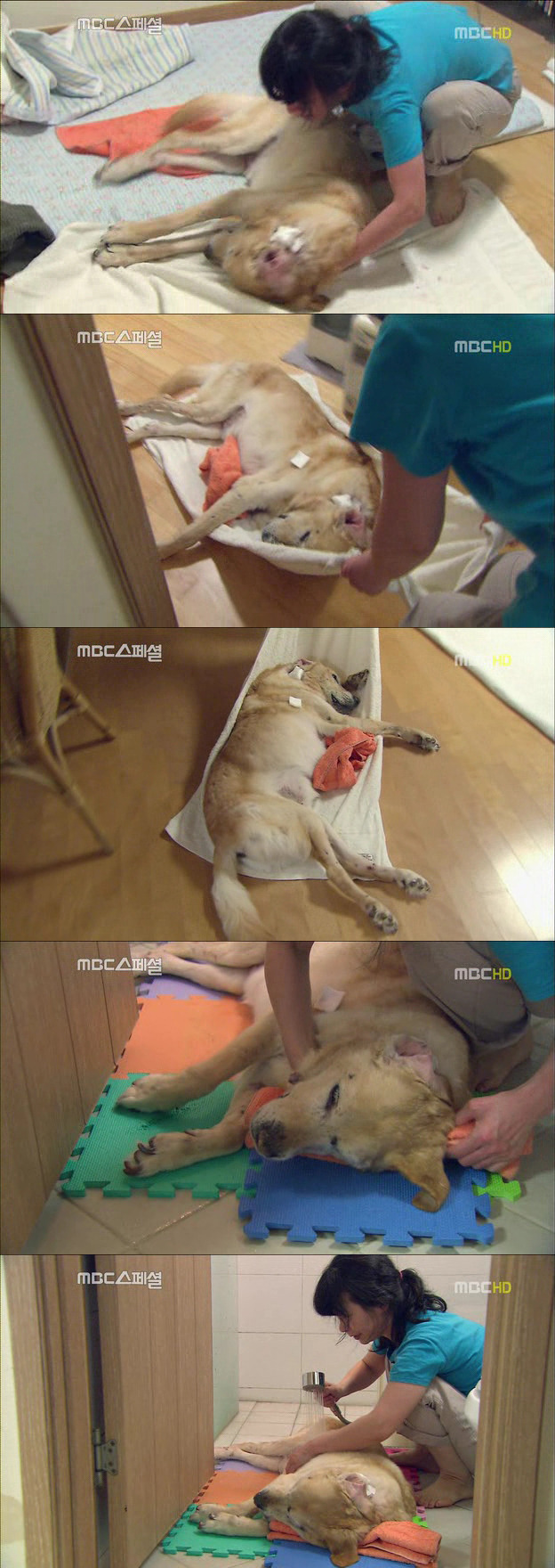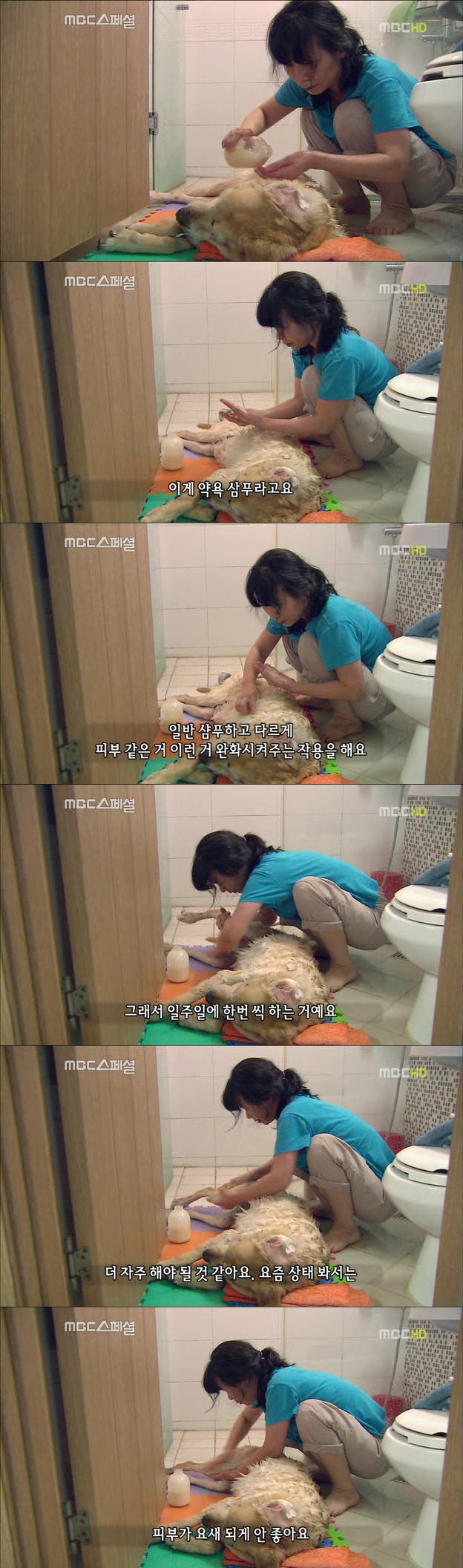 1주일에 한 번 씩 꼬박 대부의 목욕을 시키는 인순 씨