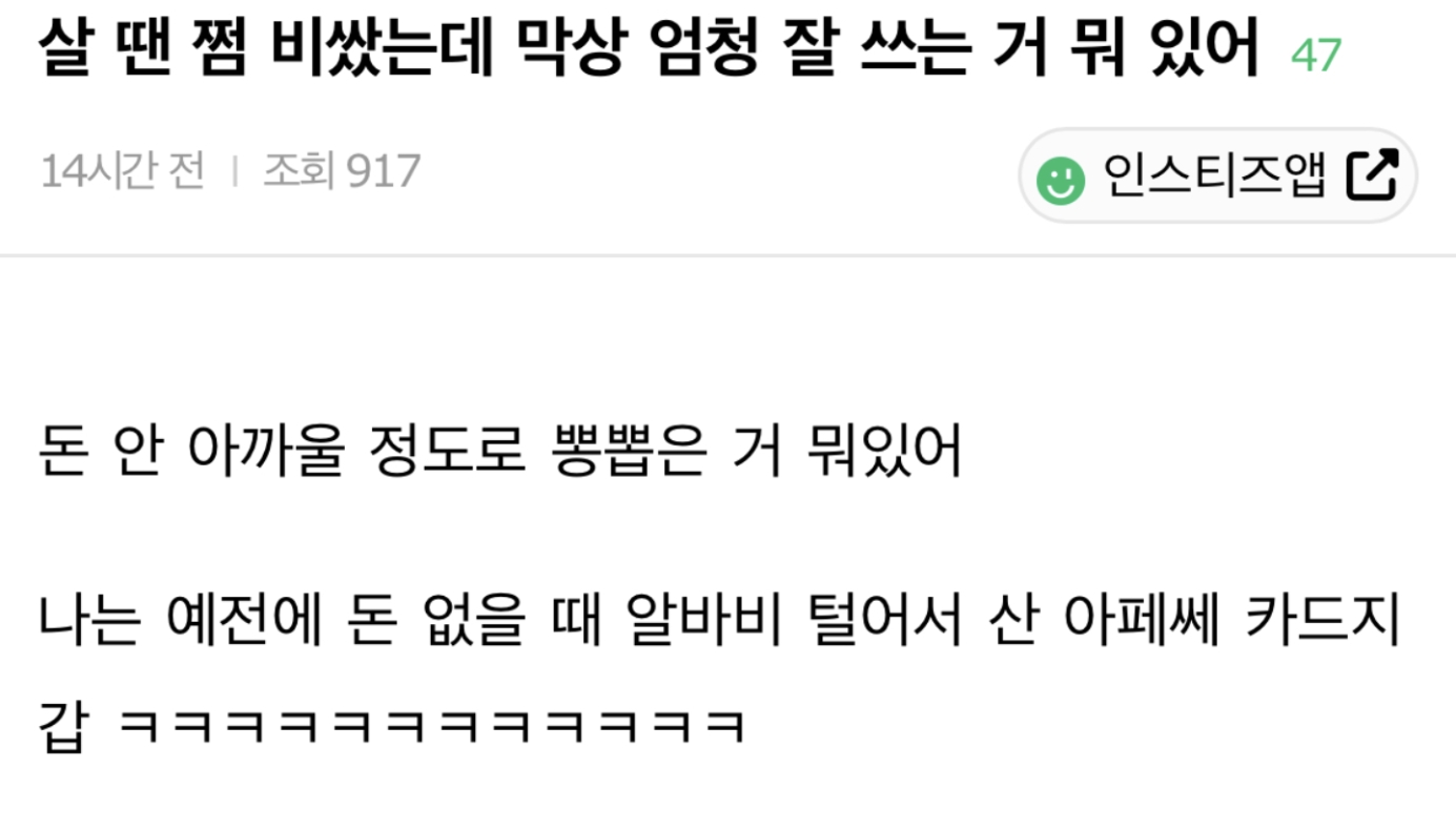 [스크랩] [기타]살 땐 좀 비쌌는데 막상 잘 쓰는 물건 뭐 있음? 작성자오리걸음|작성시간26.01.29|조회수82,654 목록 댓글 353 글자크기 작게가 글자크기 크게가 다음검색 스크랩 원문 : 도탁스 (DOTAX) 현재 게시글 추가 기능 열기 북마크 공유하기 신고 센터로 신고 댓글 댓글 353 댓글쓰기 답글쓰기 댓글 리스트 작성자500억부자 | 작성시간 26.01.30 제습기 커피머신 작성자여자만사랑해 | 작성시간 26.01.30 글램팜고데기 고데기가 머일케비싸했는데 확실히 머리카락 손상 적은듯 답댓글 작성자아무것도안할래 | 작성시간 26.01.31 22 작성자냐냐냥냥냐냥냐냐 | 작성시간 26.01.31 건조가 작성자바닐라신나 | 작성시간 26.02.02 다이슨 에어랩 댓글 전체보기